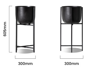 Bring decorative charm to your interior with the Ruwa Planter. Crafted from premium mild steel and aluminium, its sleek, matte black finish and heightened stand showcase its functional beauty. The Ruwa’s understated design perfectly complements your potted plants, floral arrangements, or artistic display items.