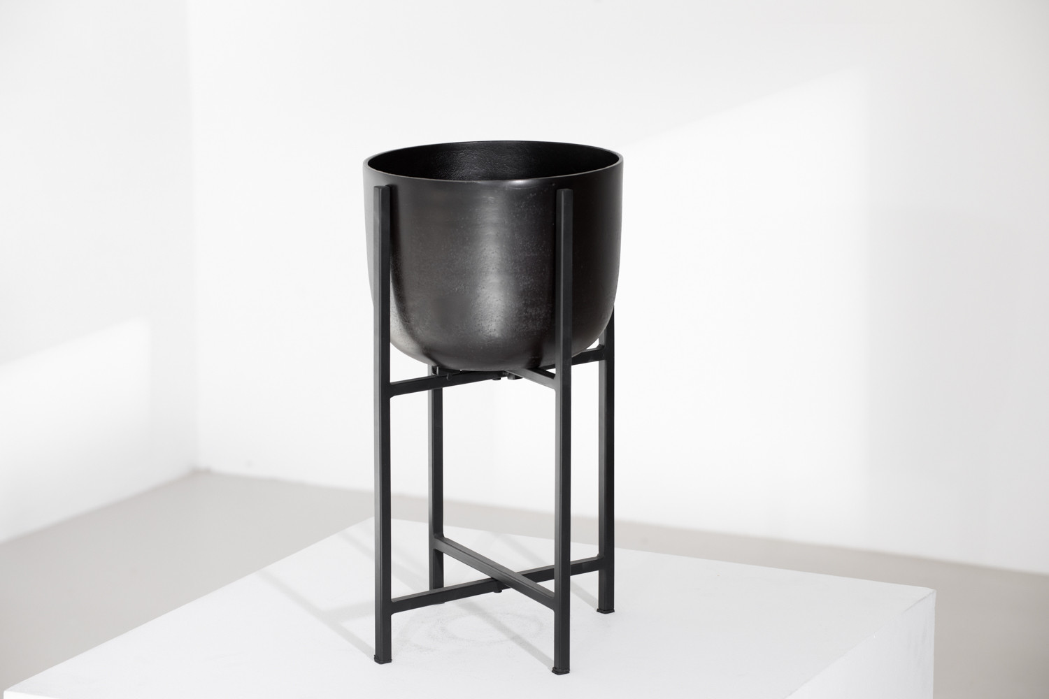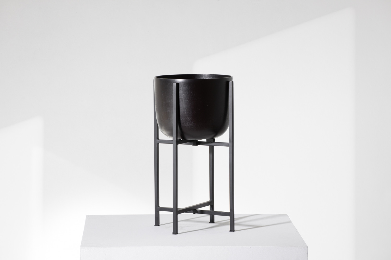Bring decorative charm to your interior with the Ruwa Planter. Crafted from premium mild steel and aluminium, its sleek, matte black finish and heightened stand showcase its functional beauty. The Ruwa’s understated design perfectly complements your potted plants, floral arrangements, or artistic display items.