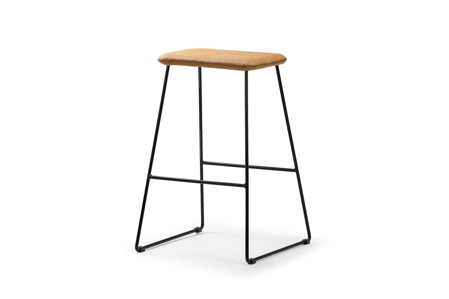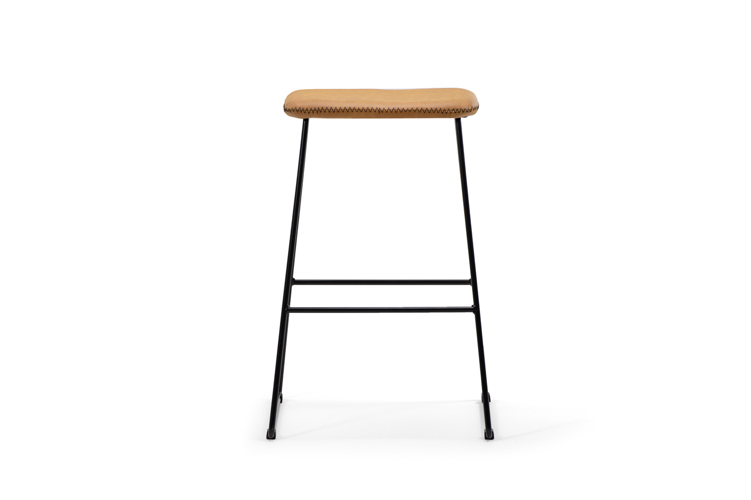 The design of the frame, constructed from black coated steel, ensures excellent stability and durability, with the convenience of a built-in footrest. Soft textured polyester upholstery provides a comfortable seat, with exposed zigzag stitching adding an extra touch of character to this piece.