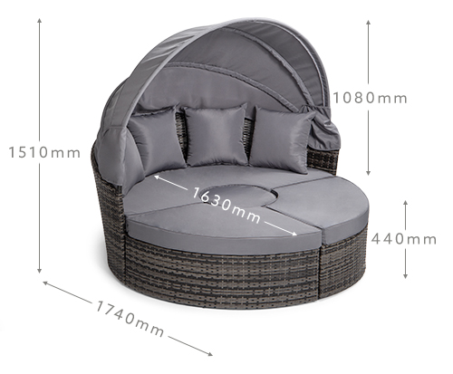 Three Seater: 1600mm (L) x 1740mm (W) x 1510mm (H) | Seat Height: 440mm | Seat Depth: 1630