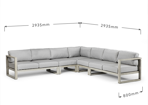 2935mm (L) x 2935mm (L) x 800mm (W)