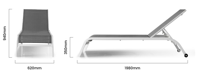 620mm (L) x 1980mm (W) x 350mm (H)—(Reclined) and 940mm (H) Raised