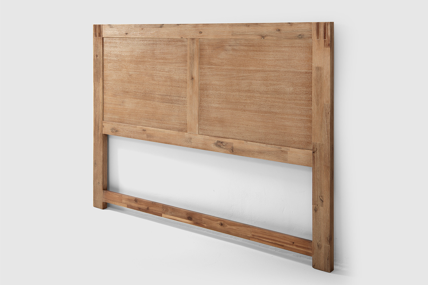 The Vancouver Acacia Wood Headboard features a bold inset design in warm, neutral wood tones with subtle accents, bringing a sense of contemporary class to your bedroom while visually anchoring your bed. The standalone design requires no installation, meaning no drilling or messy holes to fill up when moving.
