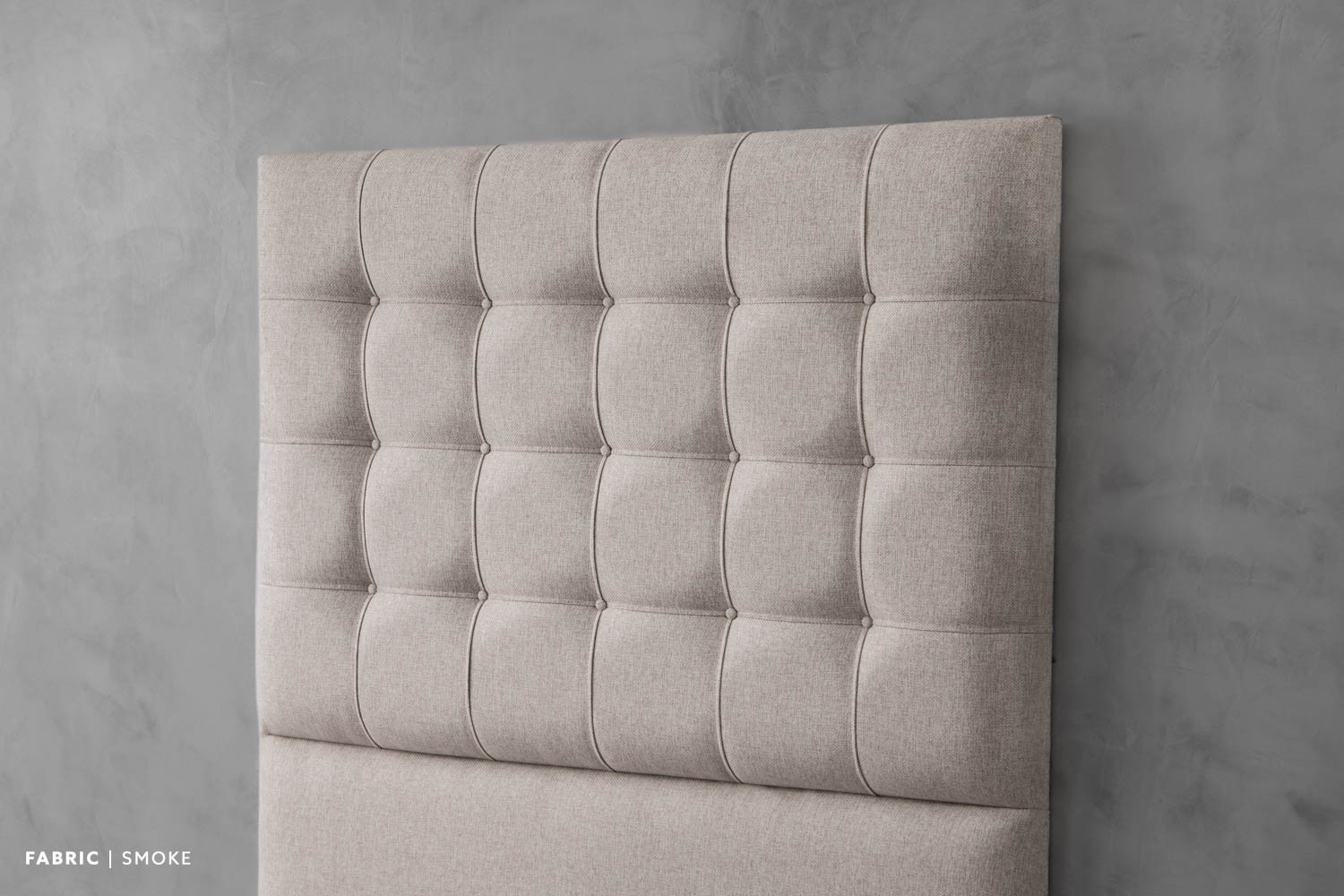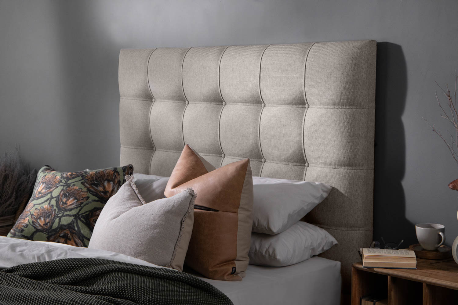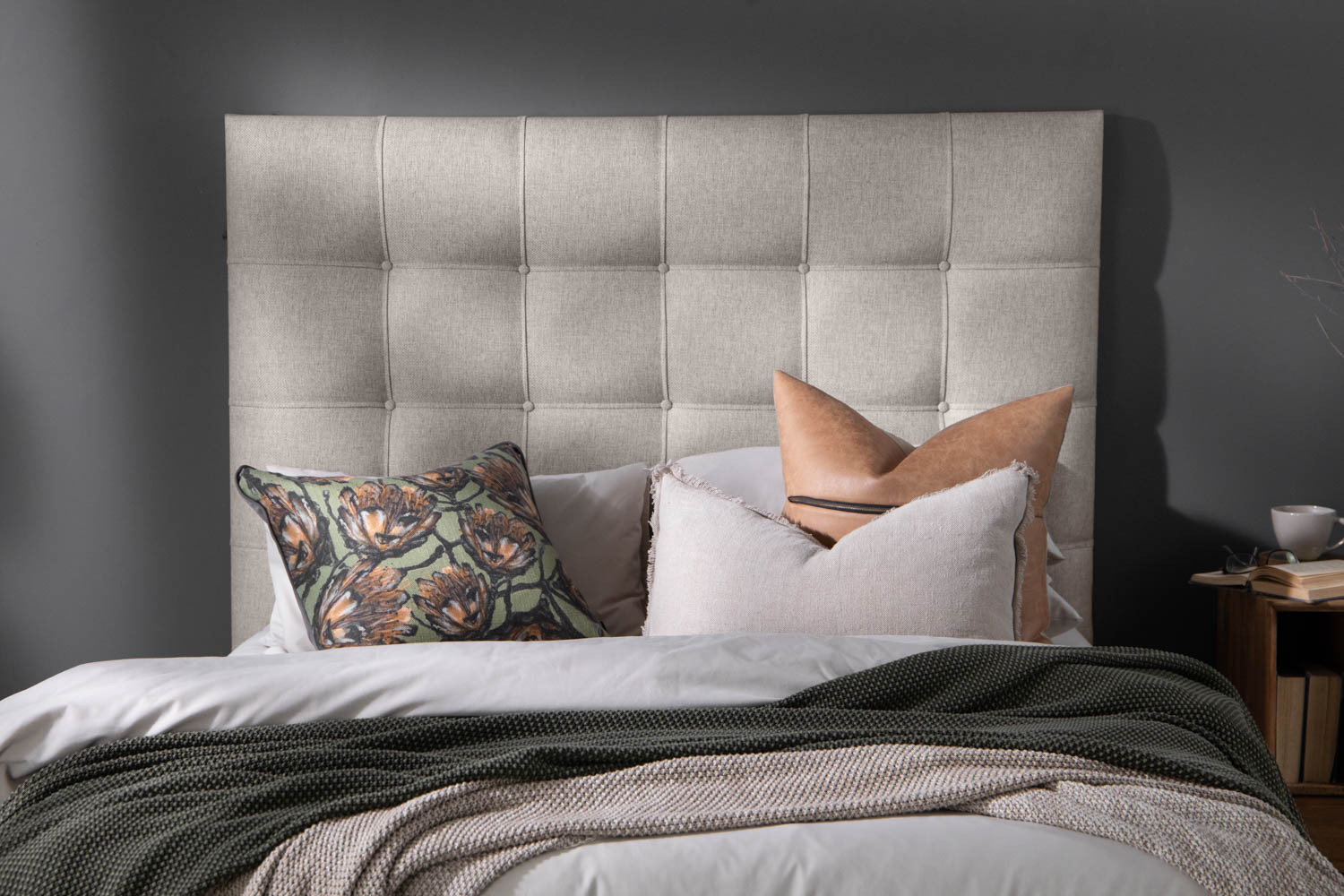 The Ariella headboard features a large grid tufted design with button detailing for a stylish contemporary look. Generously padded and well proportioned, this headboard offers cosy and comfortable support when you need a couple of peaceful hours to work or read in bed.