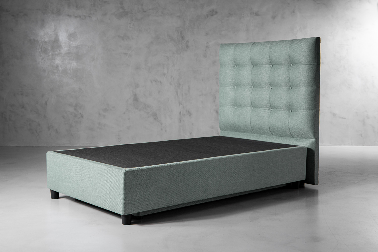 - A modern, upholstered bed base with an additional sleek pull-out bed base
