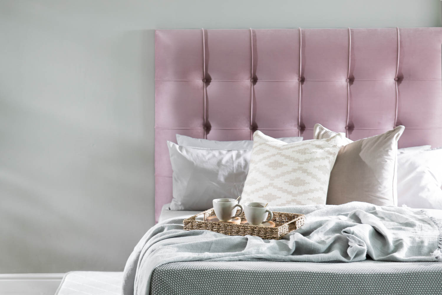 - Generously proportioned headboard with large grid tufting