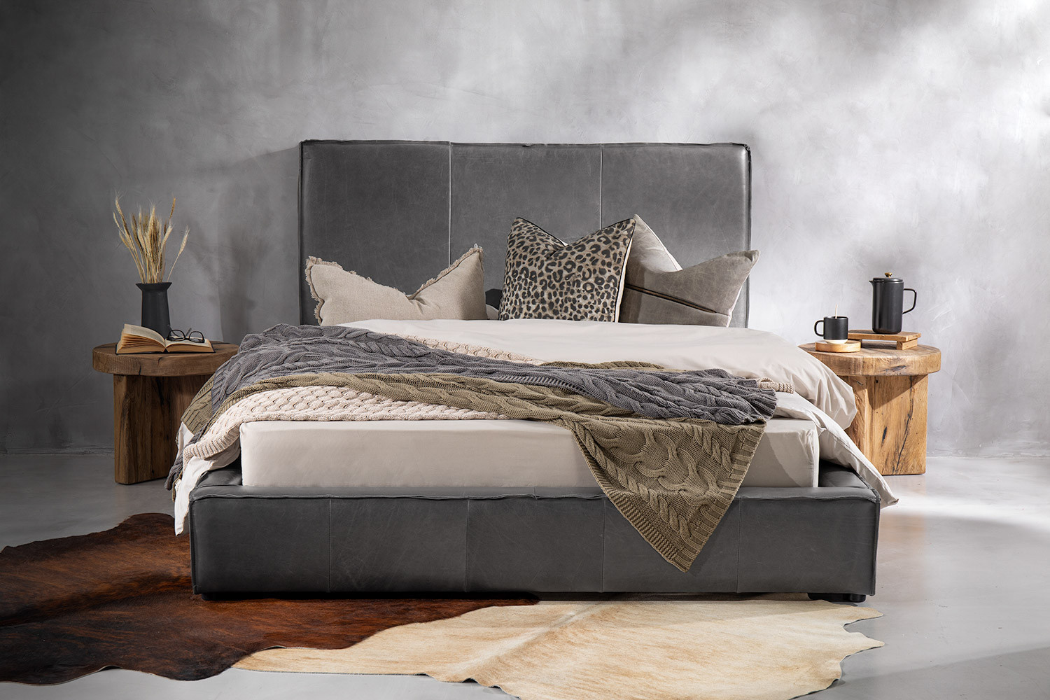 Matlock Kendrix Leather Bed - Queen - Charcoal
