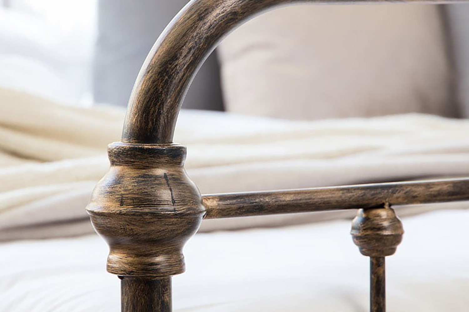 The Mckenzie Bed blends traditional and urban inspiration with its metal piping style frame, featuring a vintage weathered bronze finish. The perfect addition to blending with an urban or traditional styled bedroom, or make a quirky statement all of its own.