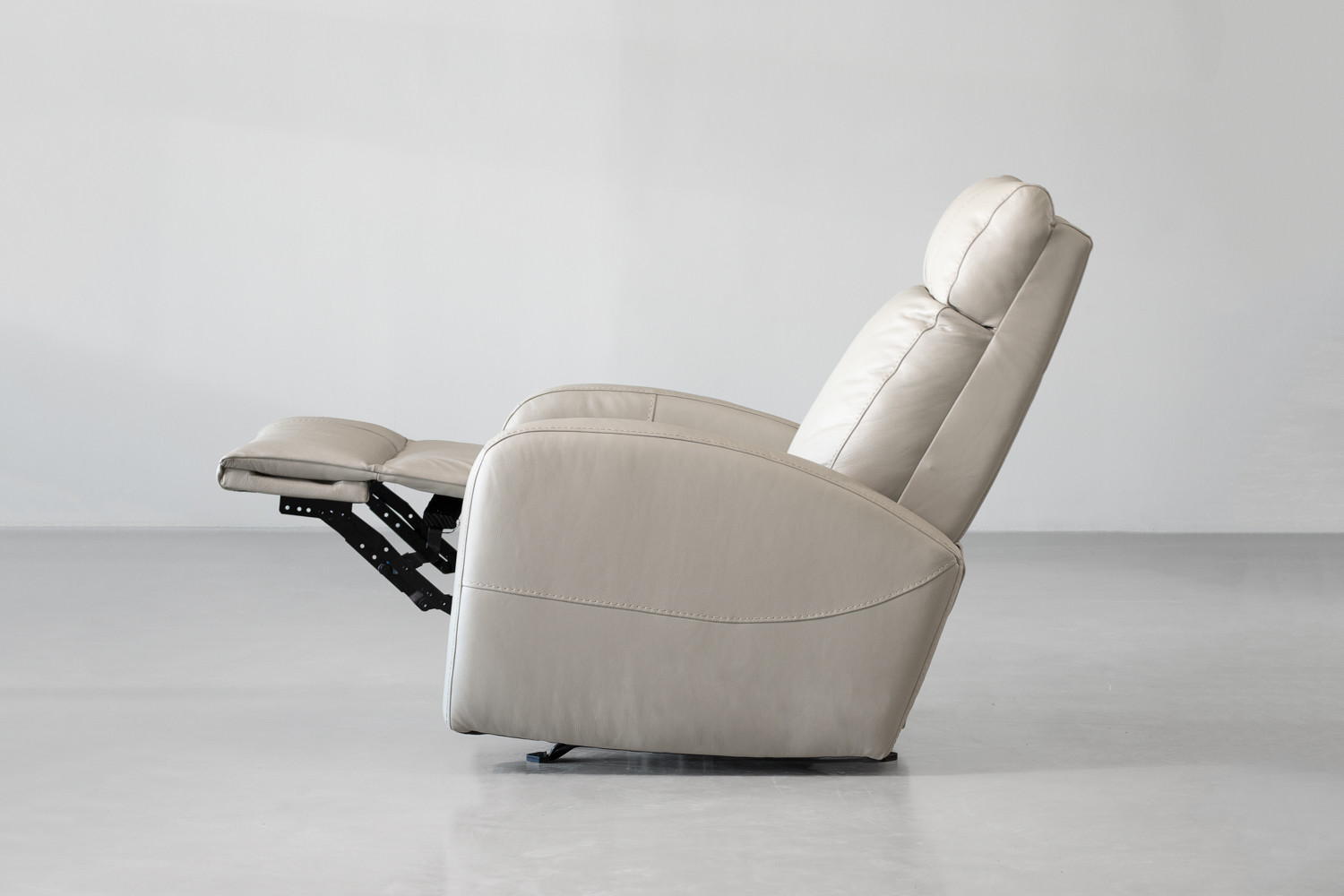 A modern nod to the classic laid-back rockers of old, the Benton Rocker Recliner welcomes vintage comfort wrapped in contemporary style. This delightful meeting of worlds is draped in high-quality top-grain leather for comfort and longevity, while a clever rocking mechanism means that its functionality is flawless.