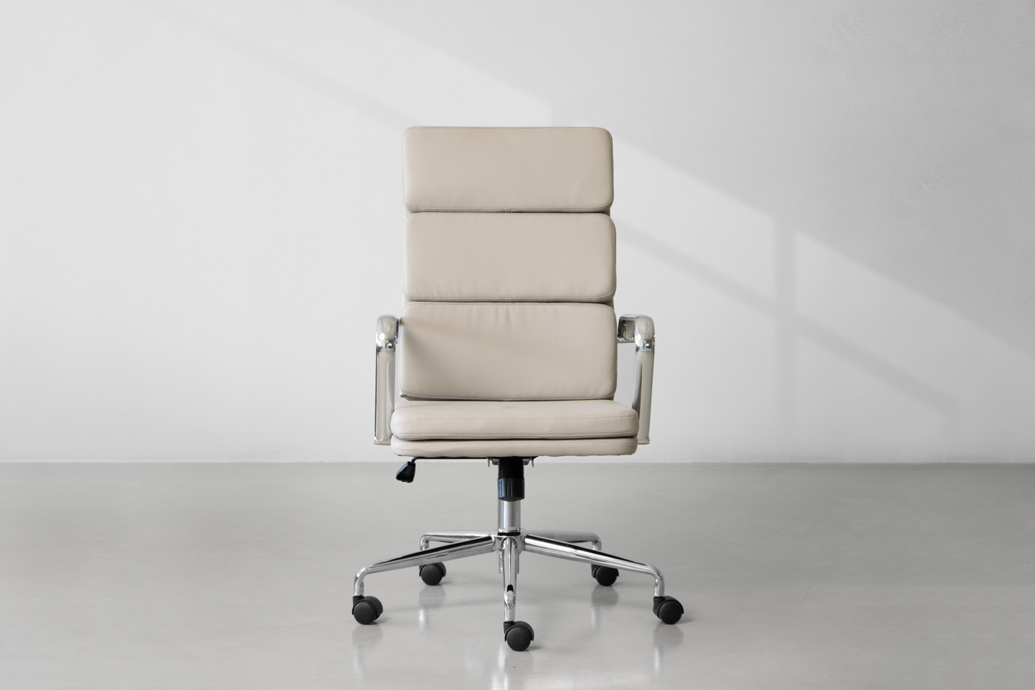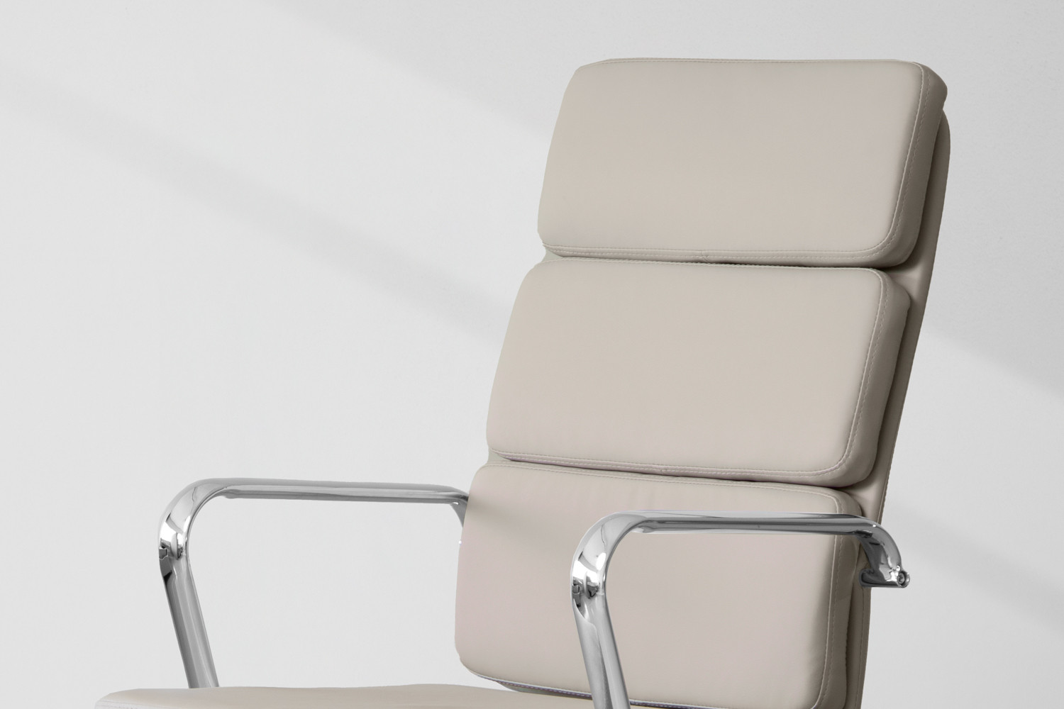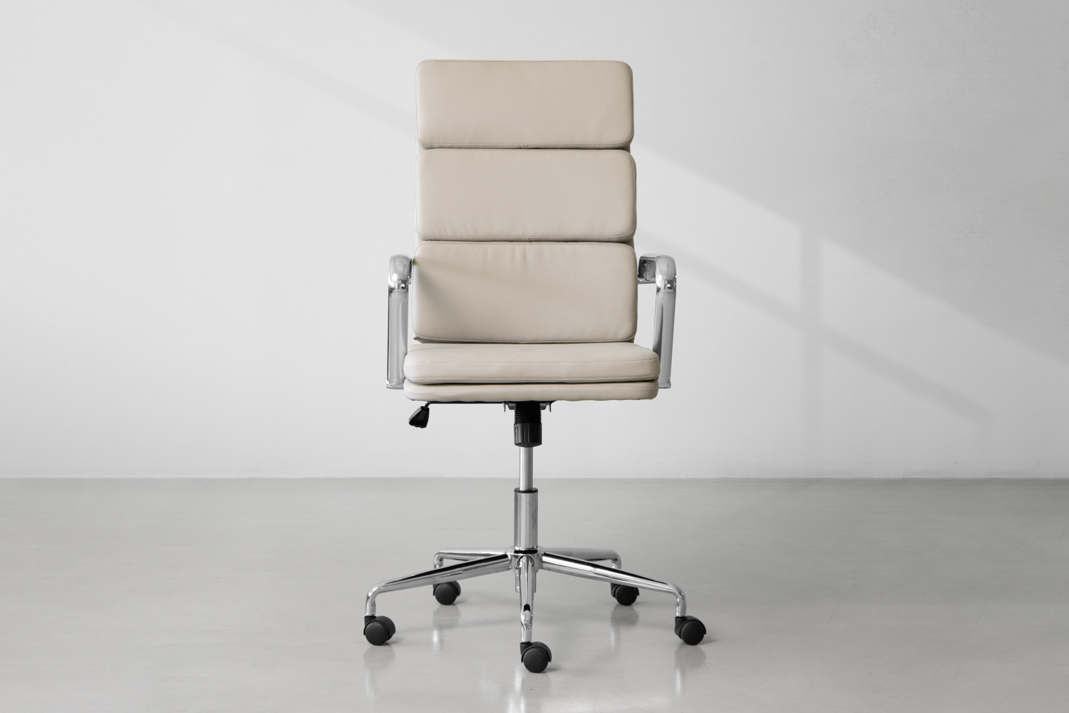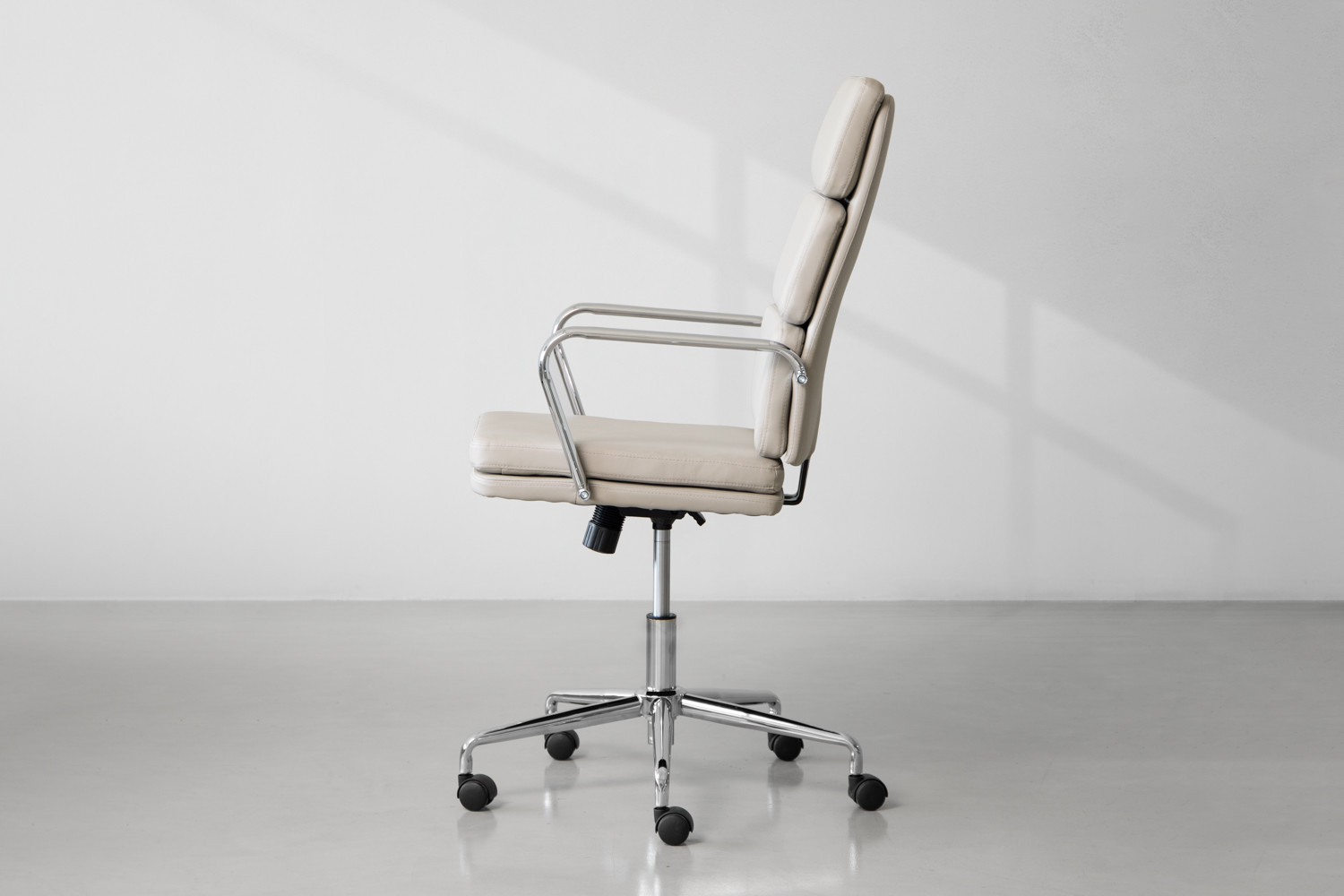 The Rogen Office Chair features a chrome-plated steel frame ensuring excellent durability and support, while high-quality PU leather upholstery adds to the sleek look with comfort and practicality. The Rogen comes with easy height adjustment, 360° swivel, and castor wheels to optimise your working comfort.