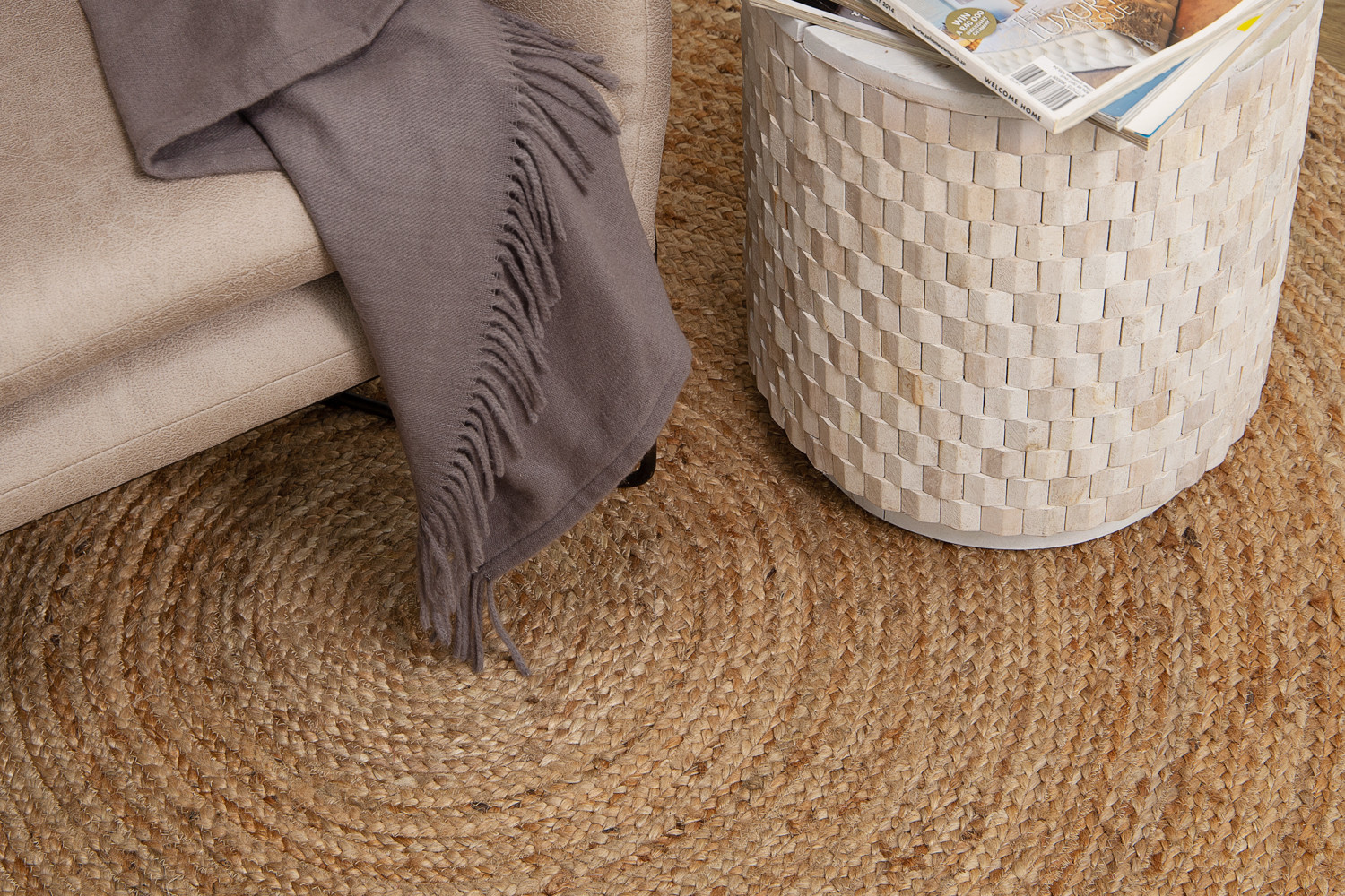 Ideal for indoor use, this medium size round rug is the perfect way to visually enlarge a small space like a nook or study, or easily create a focal point in a bedroom or living room. The natural beauty of Jute works particularly well on wooden floors to offer protection and help absorb noise. The natural variations in the tone of the rug do well to mask dust and dirt, and the rug is a great choice for homes with pets.