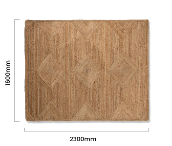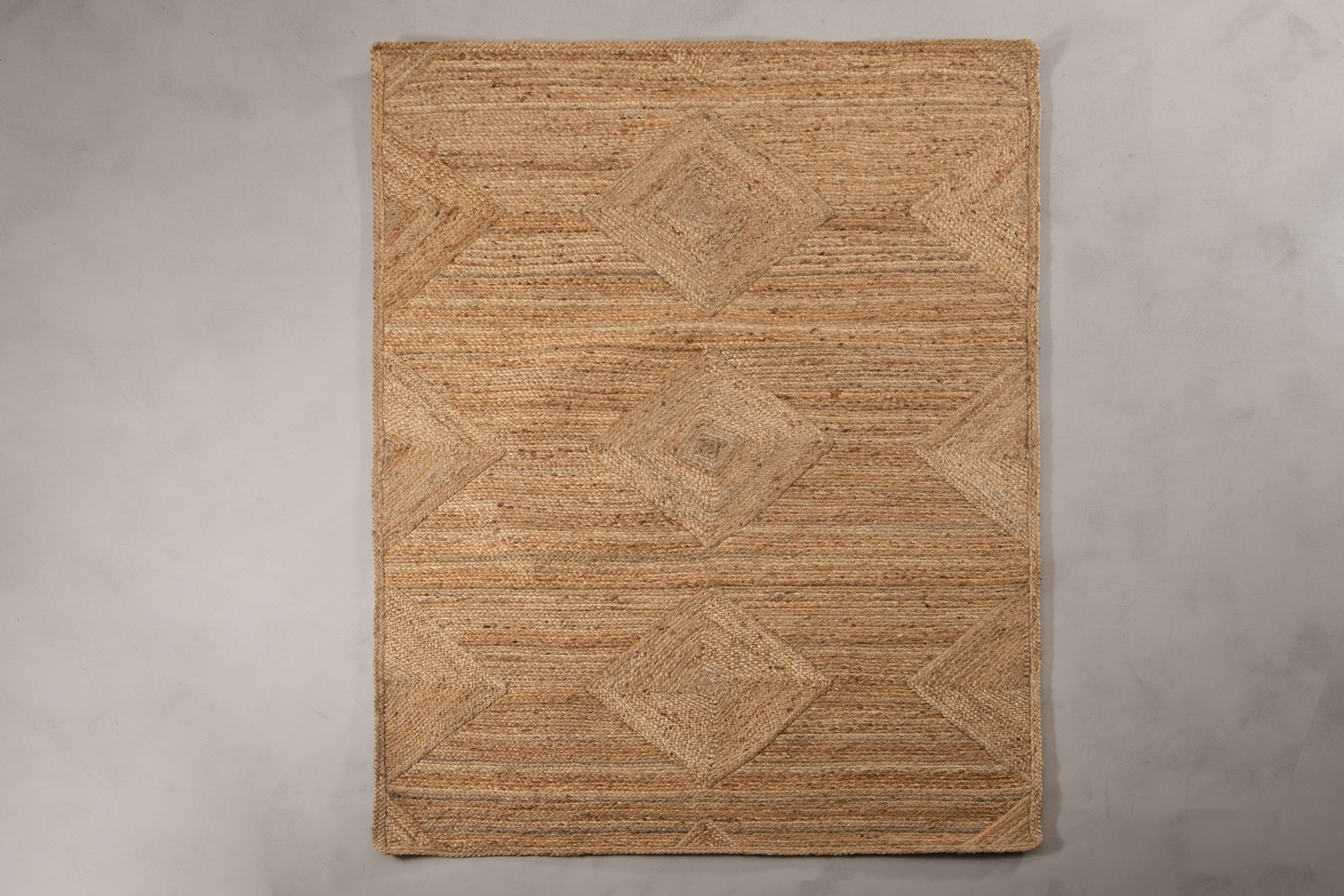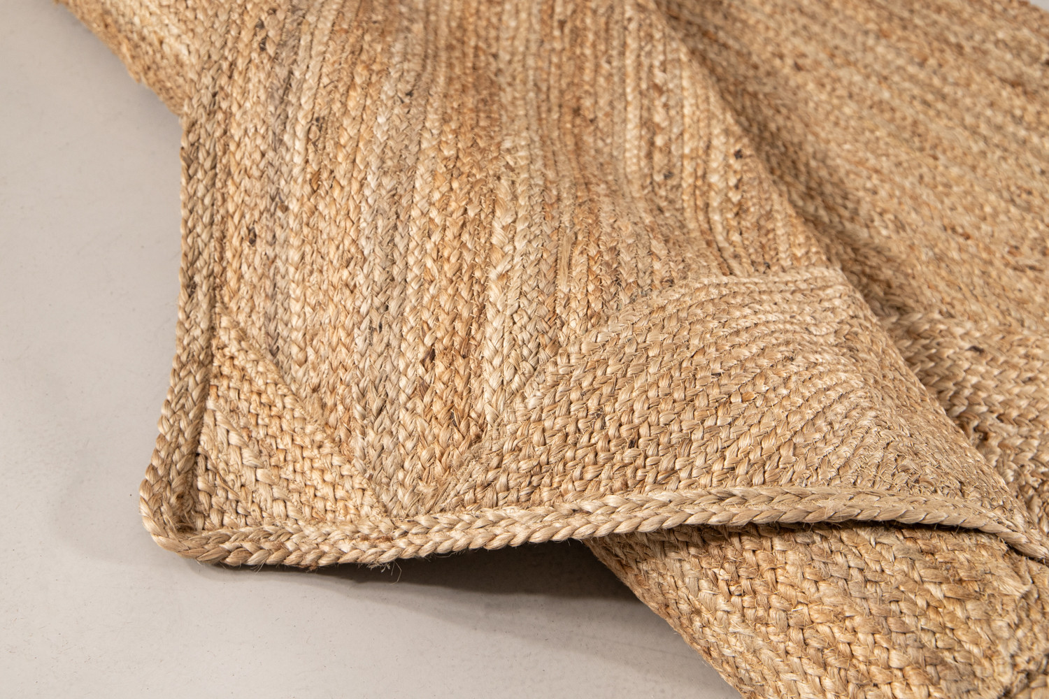 Tailored for indoor use, this medium-sized rectangular rug offers the perfect solution for expanding cosier spaces such as nooks or studies, or for creating an eye-catching focal point in larger areas like bedrooms or living rooms. Jute's innate charm is beautifully accentuated on wooden floors, ensuring protection and noise absorption. Its natural tonal variations effectively disguise dust and dirt, making it an excellent choice for households with pets