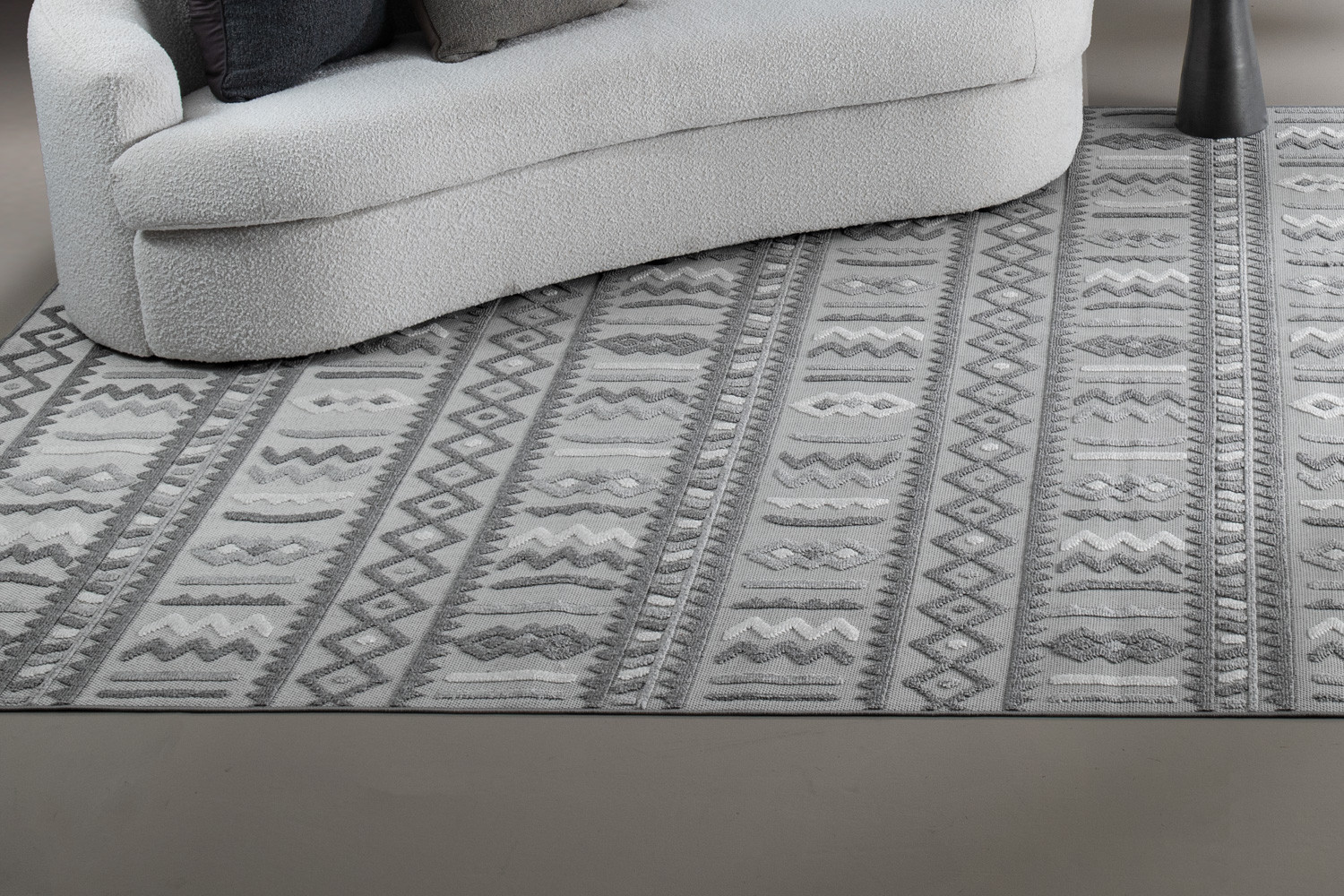 The Amani Rug is a style statement that combines functionality with bohemian elegance. Its soothing grey tones create a calming foundation, while the intricate combination of patterns and beautiful detailing adds a touch of artistry to your space. Whether styled under a coffee table in a modern living room, anchoring a dining area, or adding texture to an open indoor space, the Amani seamlessly complements a variety of interiors.