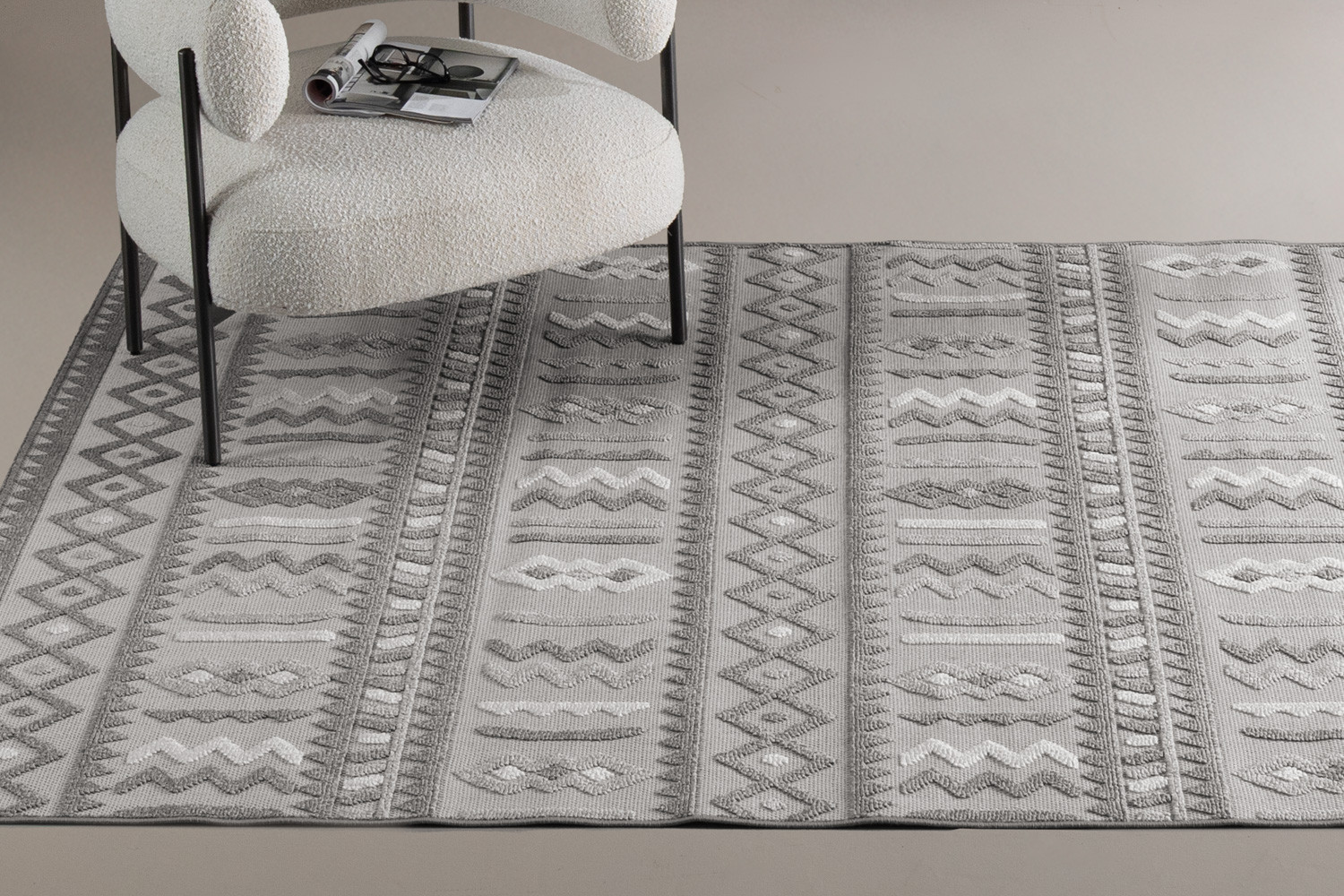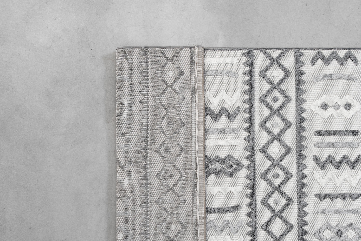 The Amani Rug is a style statement that combines functionality with bohemian elegance. Its soothing grey tones create a calming foundation, while the intricate combination of patterns and beautiful detailing adds a touch of artistry to your space. Whether styled under a coffee table in a modern living room, anchoring a dining area, or adding texture to an open indoor space, the Amani seamlessly complements a variety of interiors.