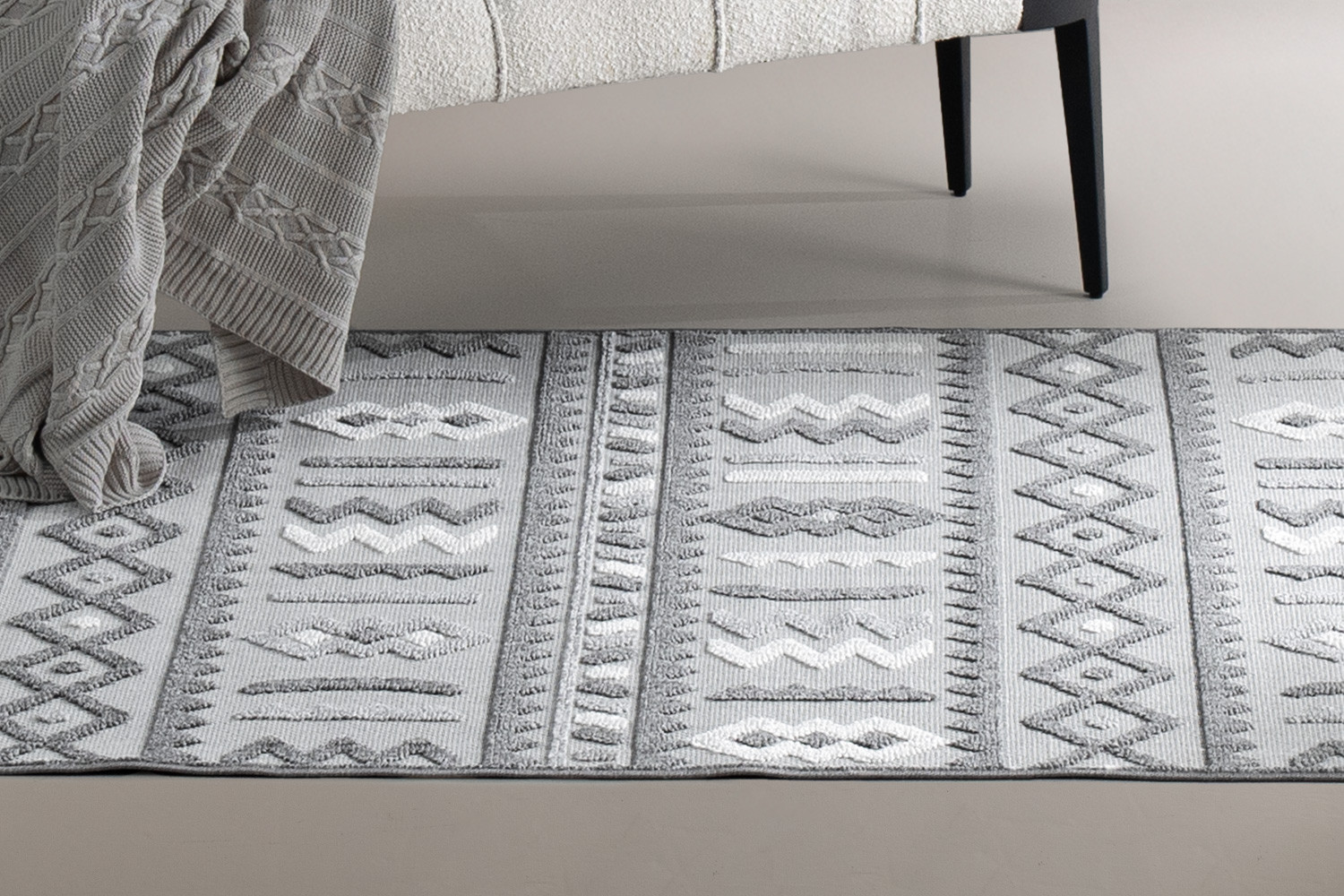 The Amani Rug is a style statement that combines functionality with bohemian elegance. Its soothing grey tones create a calming foundation, while the intricate combination of patterns and beautiful detailing adds a touch of artistry to your space. Whether styled under a coffee table in a modern living room, anchoring a dining area, or adding texture to an open indoor space, the Amani seamlessly complements a variety of interiors.