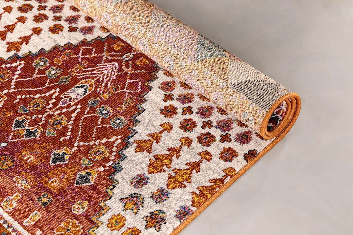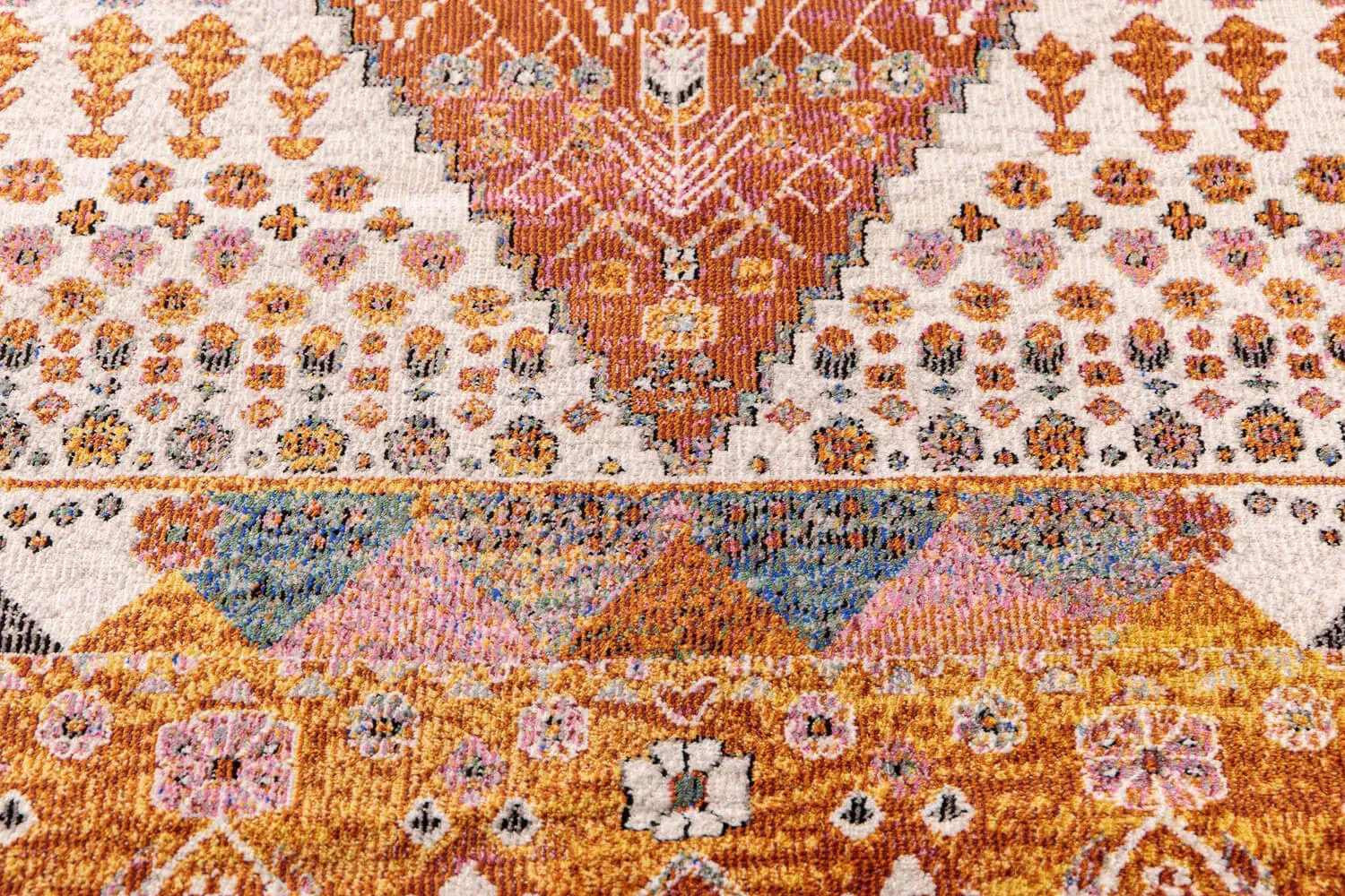 The Batu Rug brings vibrant, artisanal energy to any interior. Woven in Turkey, its kilim-inspired pattern layers warm terracotta, saffron, charcoal and ivory tones to create instant character. This low-profile, easy-care weave feels soft underfoot yet stands up to everyday living, serving as a beautiful, eye-catching living room anchor.