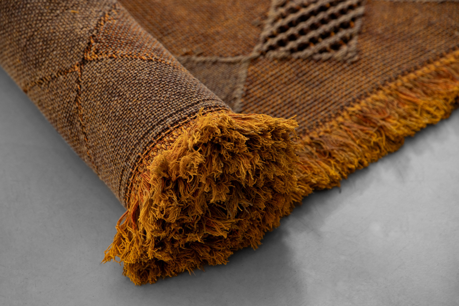 The Khaya Rug brings warmth and elegance to your interior. Made from soft, pure cotton, this Turkish Kilim is a luxurious combination of comfort and durability. The rich orange tones create a cosy and inviting atmosphere, while the antique-inspired design adds a touch of timeless style. It offers handcrafted appeal that complements a variety of décor styles, whether you’re looking to create a warm living room retreat or a stylish, inviting bedroom.