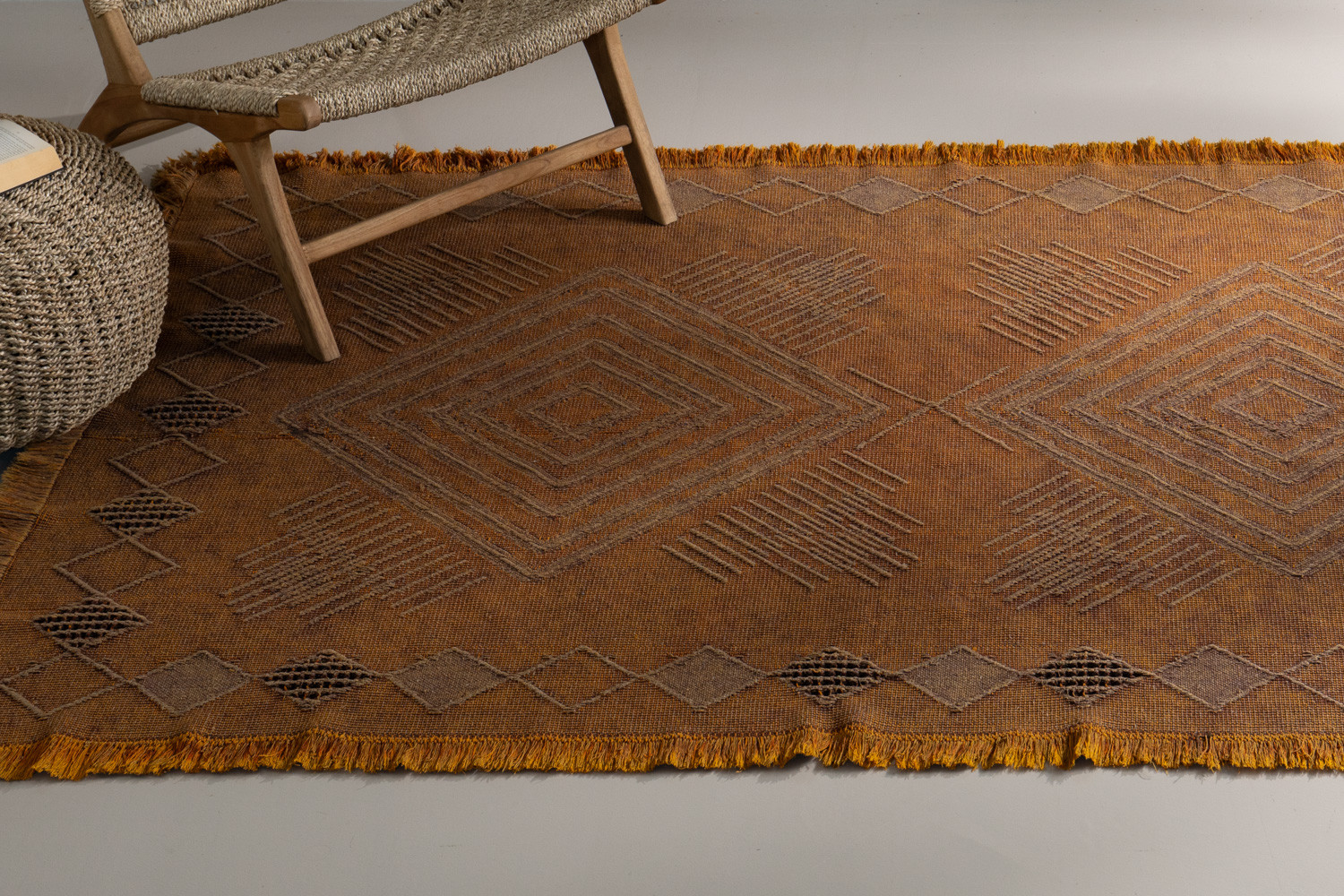 Transform your space with the Khaya Rug, a warm and inviting piece made in Turkey, woven from pure cotton. Featuring soft textures and rich orange tones, this indoor piece combines classic charm with antique-inspired detailing. Decorative tassels enhance its timeless appeal, while the intricate design makes it a stunning focal point for any room in your home.