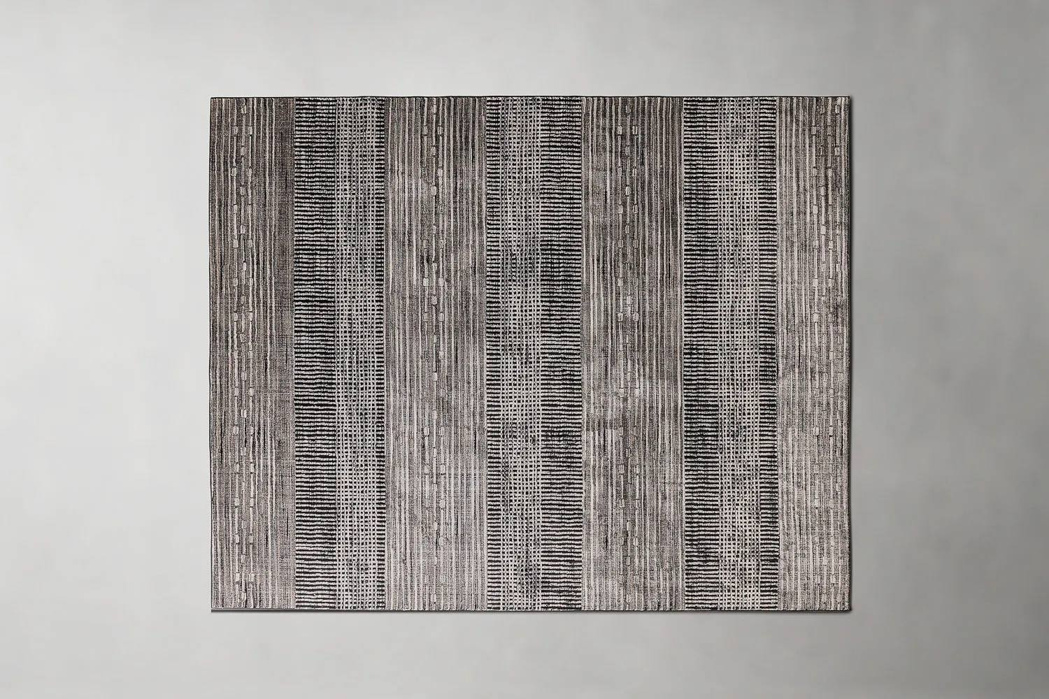 The Mirage Rug adds both visual and tactile beauty to modern spaces. Its alternating vertical bands in charcoal, ash, and soft stone create subtle movement that grounds a room without overpowering it. This monochrome stunner is expertly woven in Turkey with a low, dense pile for a soft feel and easy care. It’s a superb choice for living rooms, dining areas, and bedrooms.