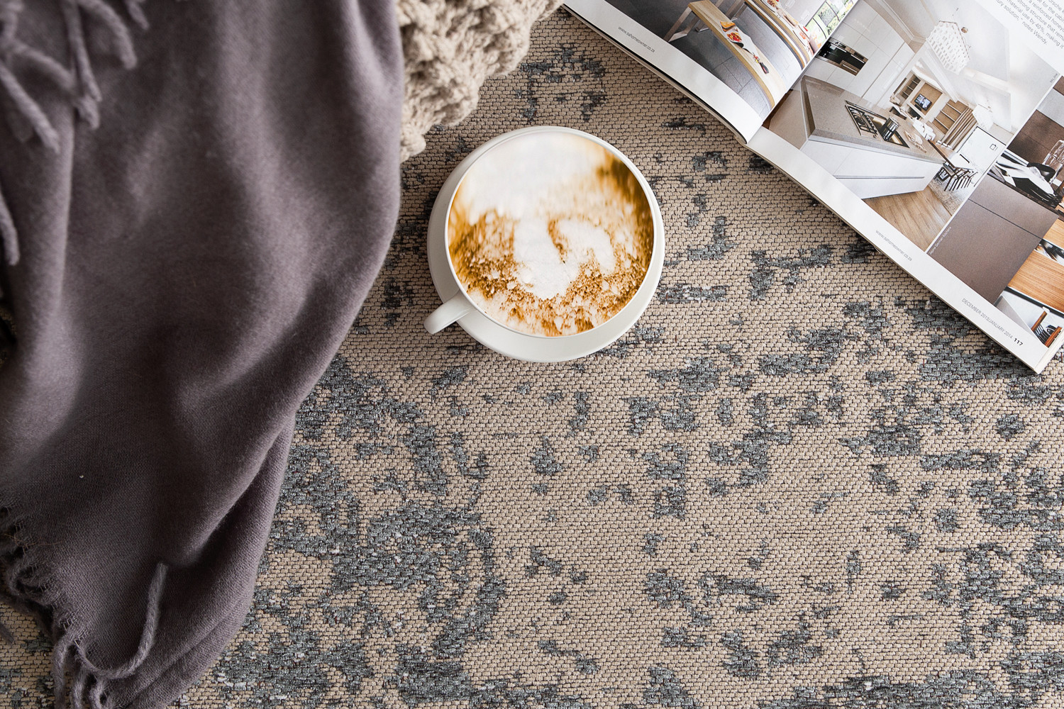 The Tabitha Silver Rug combines a Persian-inspired design with abstract touches and a vintage effect, creating a distinctive look that’s versatile enough to complement any contemporary space.