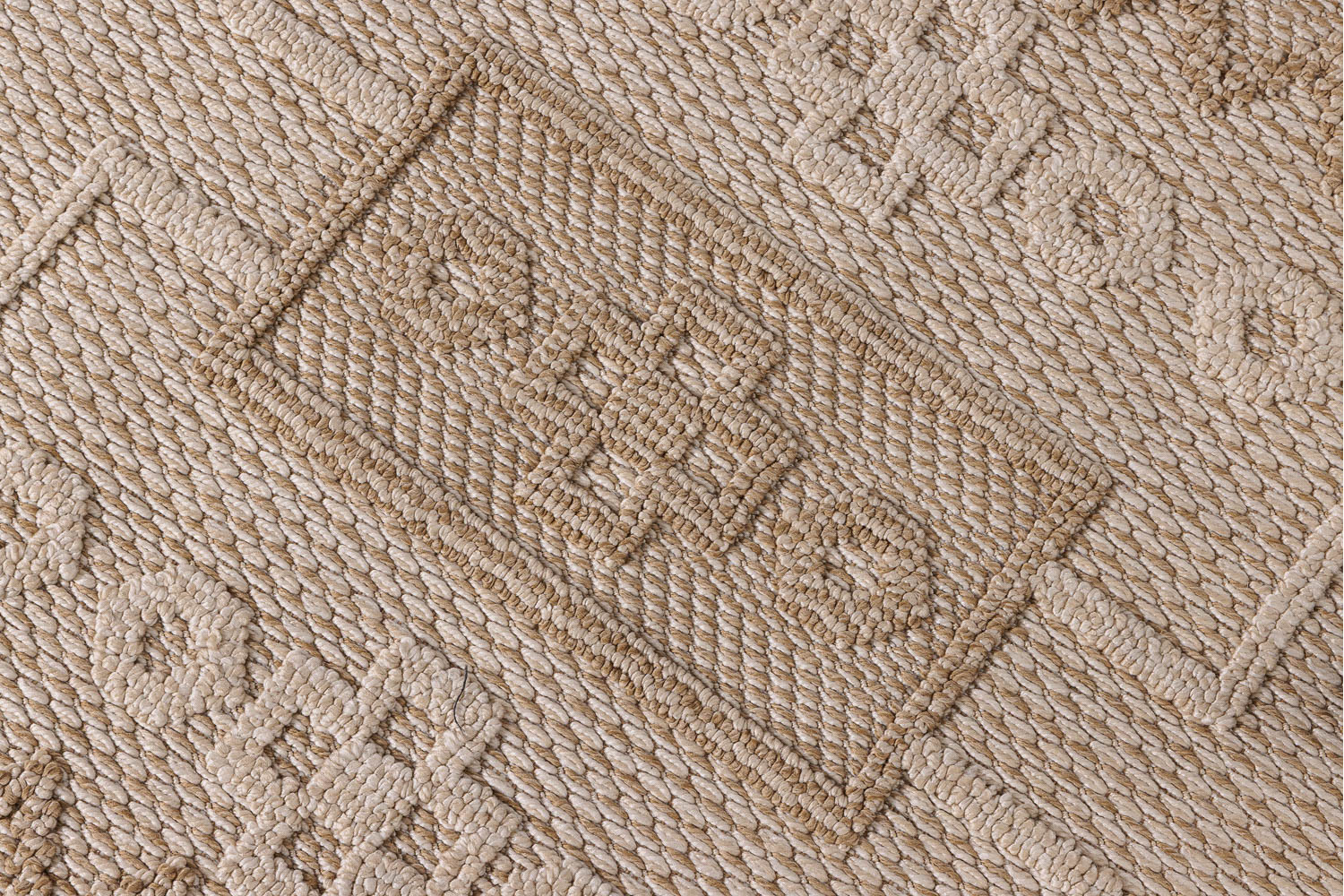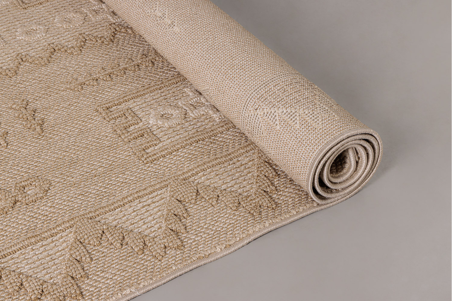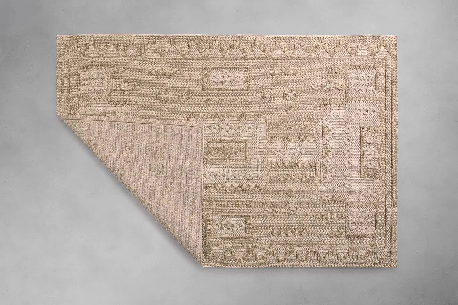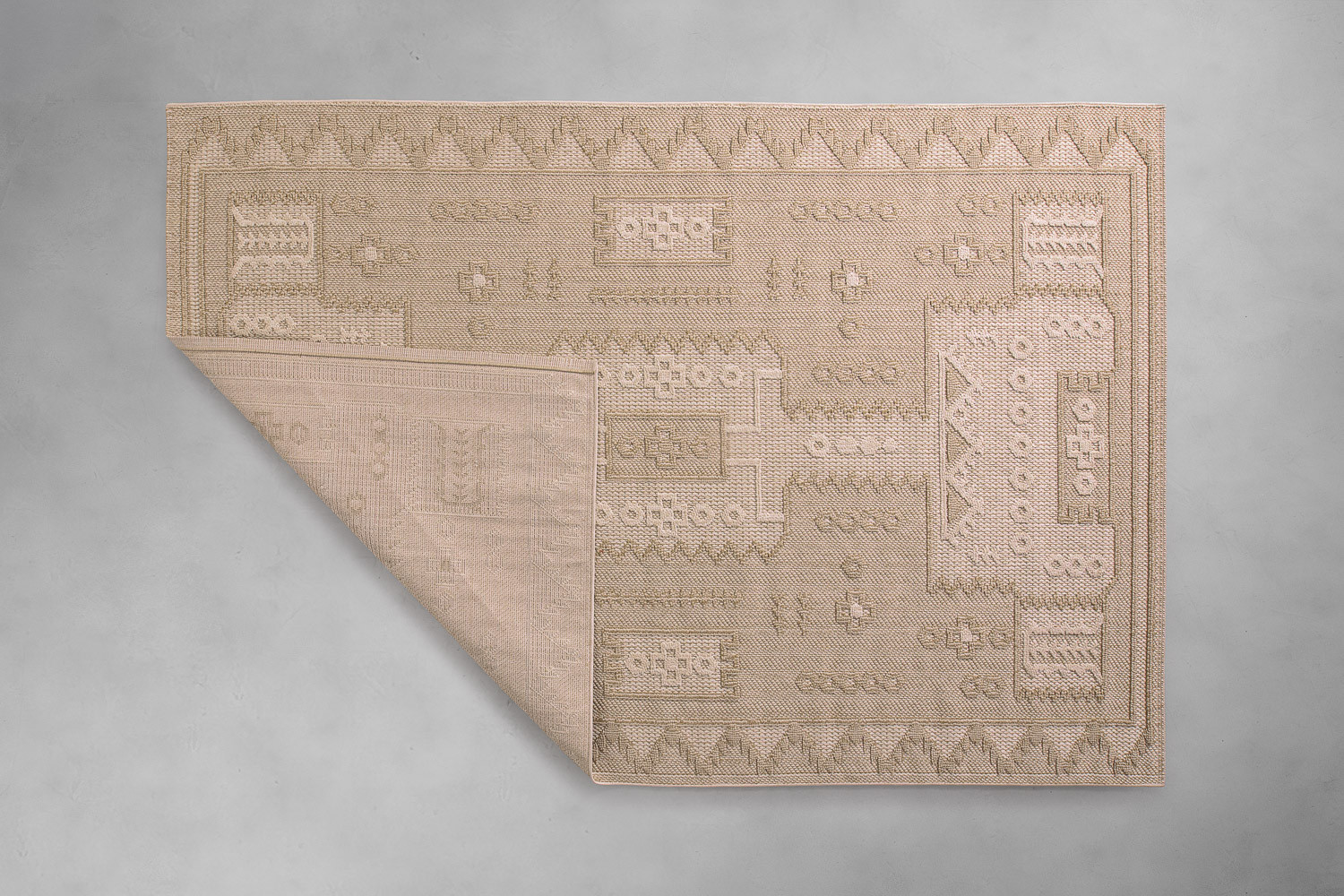 The Tekari Rug blends graphic motifs with a textured finish that encourages layering. This tightly woven piece is a great fit for busy family rooms, apartments, and open-plan living spaces. The raised pattern creates subtle texture that pairs beautifully with timber furniture, linen upholstery, and natural accessories.