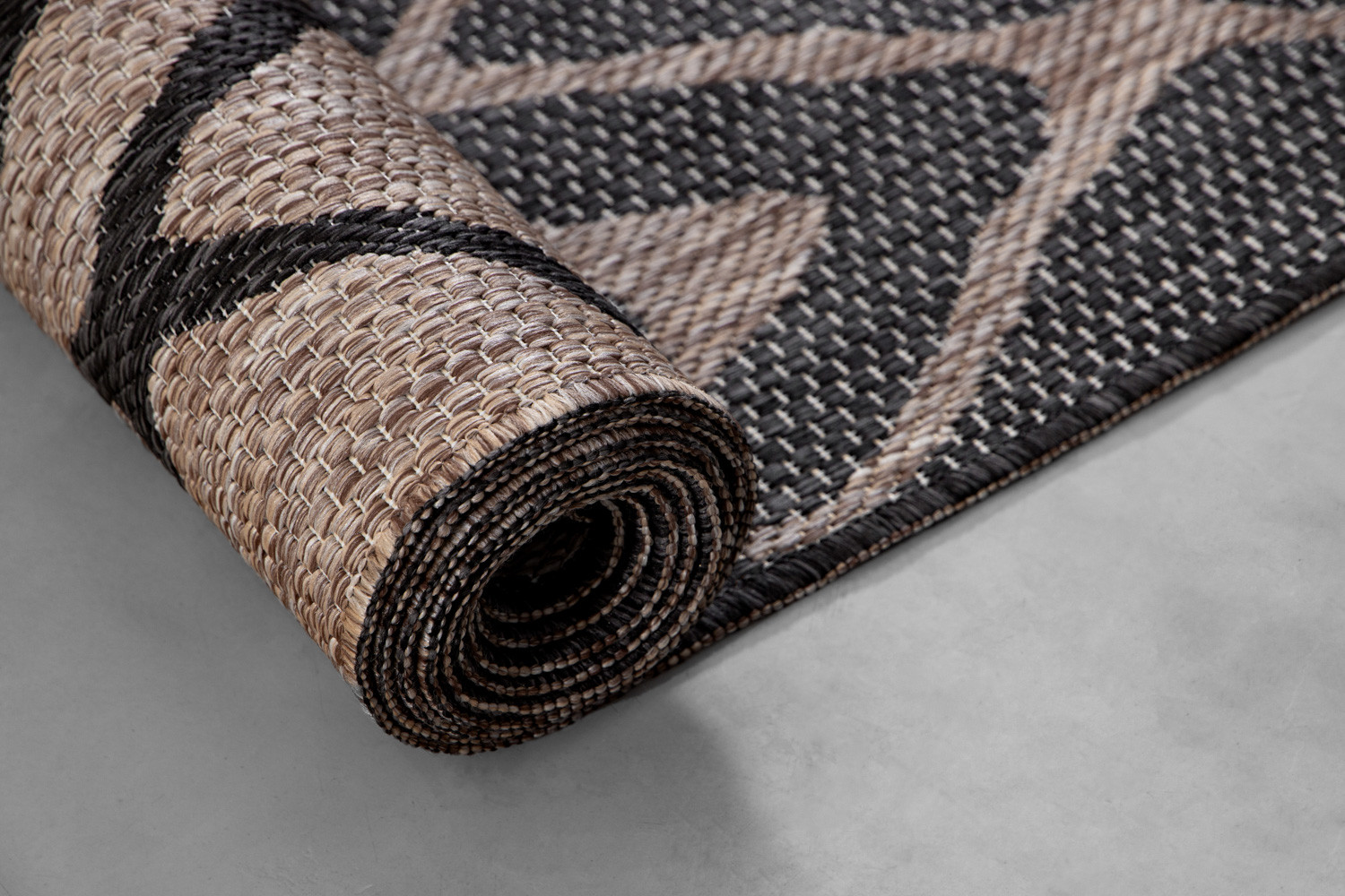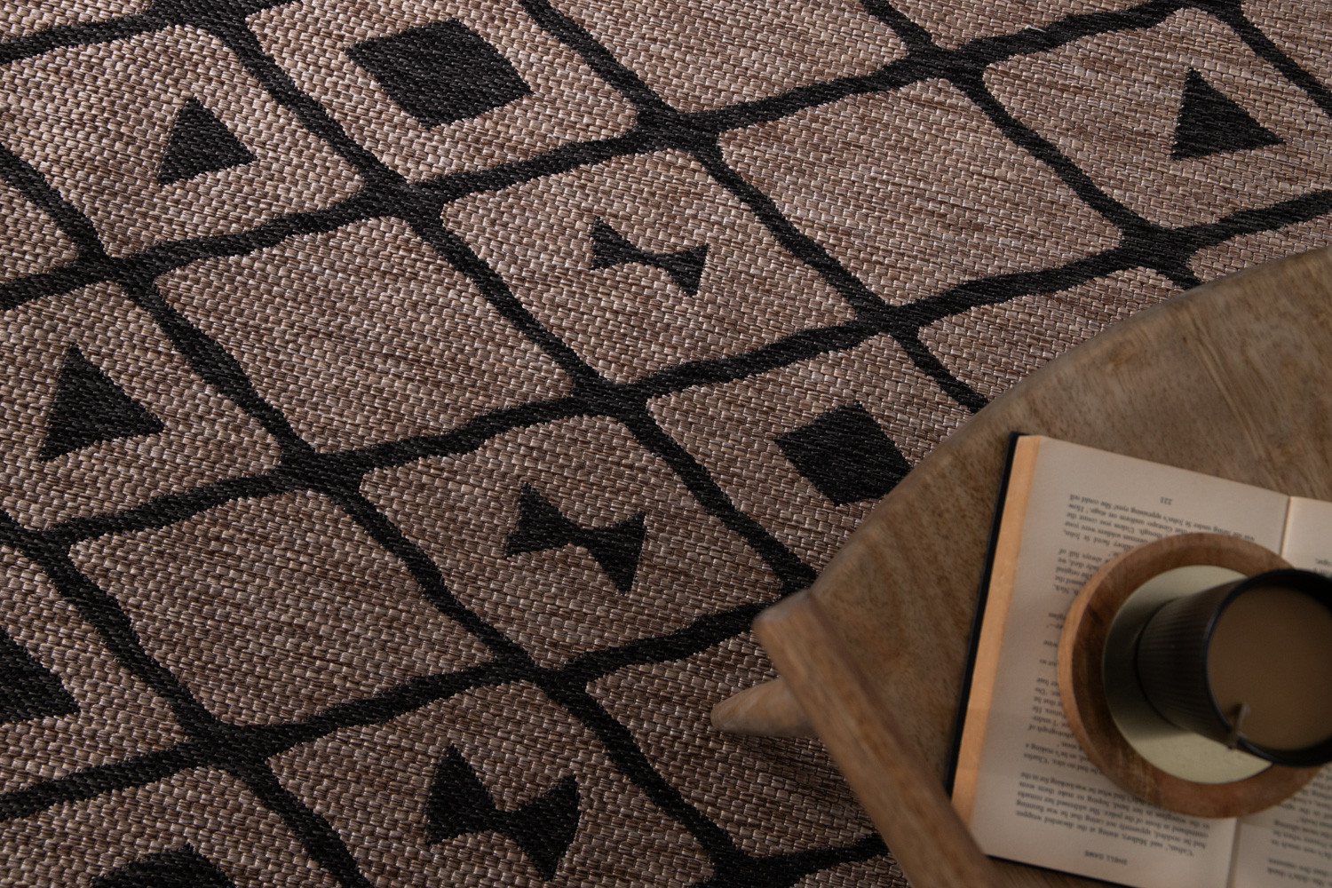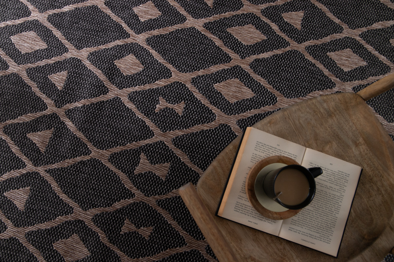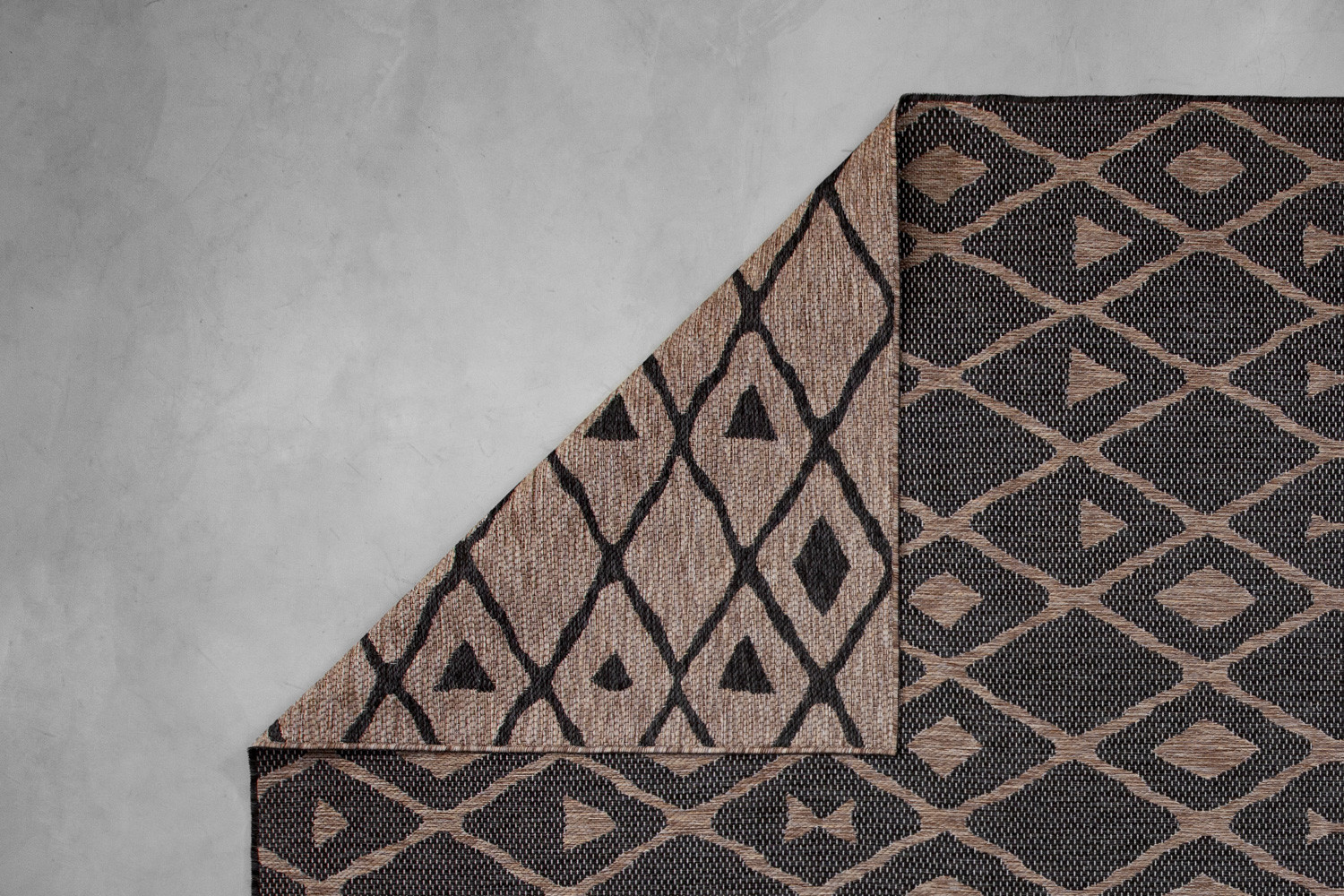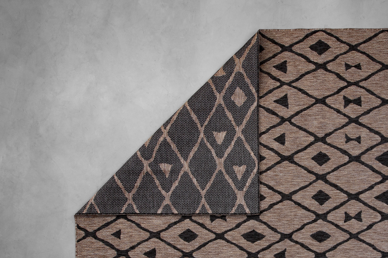 Bring bohemian charm to your living space with the Terra Reversible Rug, a versatile and stylish décor piece imported from Turkey and woven to impress. Featuring natural tones accented with dark details and geometric patterns, this rug catches the eye in any setting. Its warm textures and bohemian-inspired design make it an inviting and practical addition to indoor and outdoor spaces. The Terra is also reversible, giving you greater versatility for your décor arrangements.