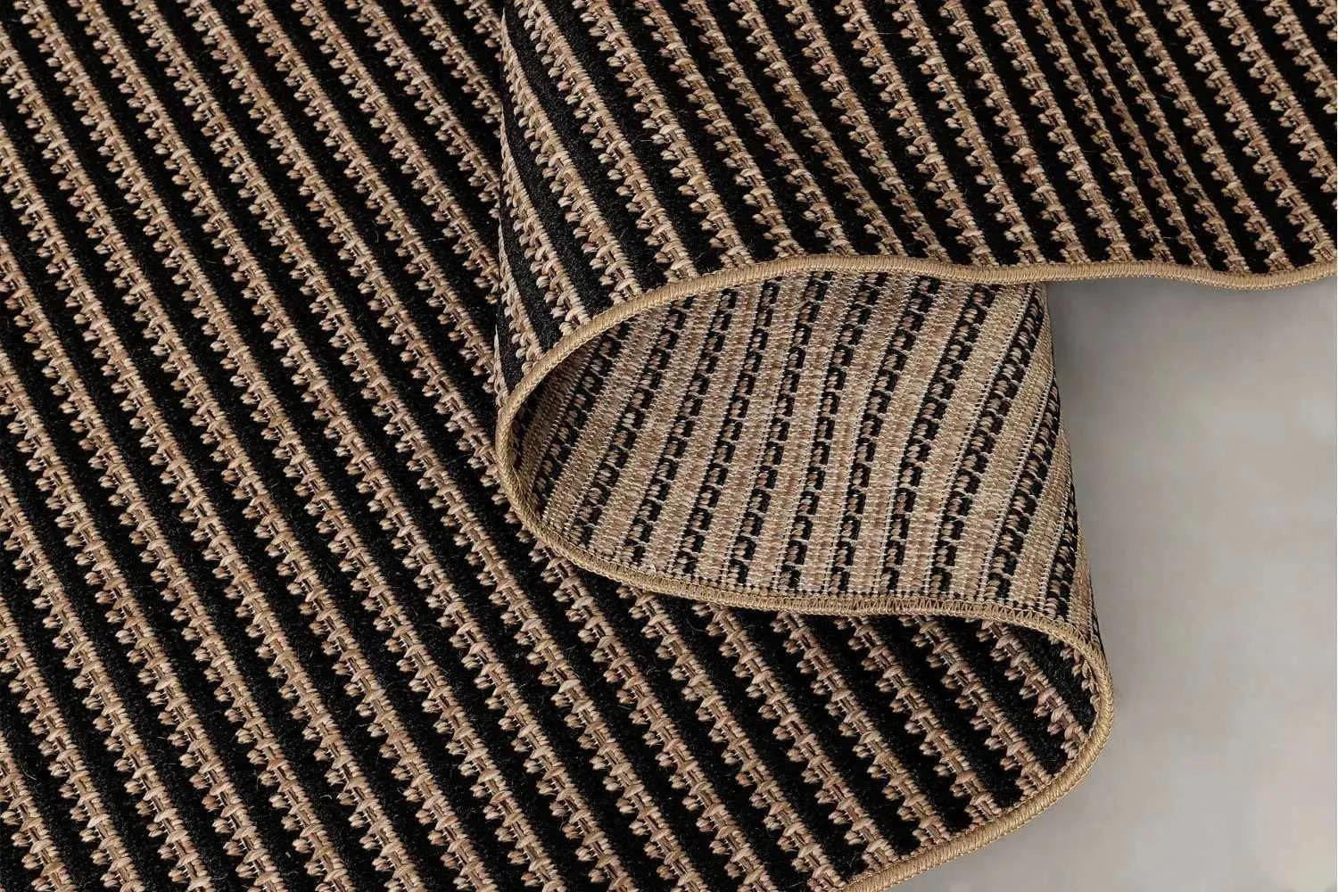 Transform any room or outdoor area with the Yora Rug, a masterpiece of practical design. Its natural colour palette, highlighted with intricate black accents, reflects a bohemian aesthetic that brings warmth and character to your space. Whether you’re placing it under a dining table, layering it in a living room, or creating an inviting outdoor seating area, the Yora elevates everything around it.