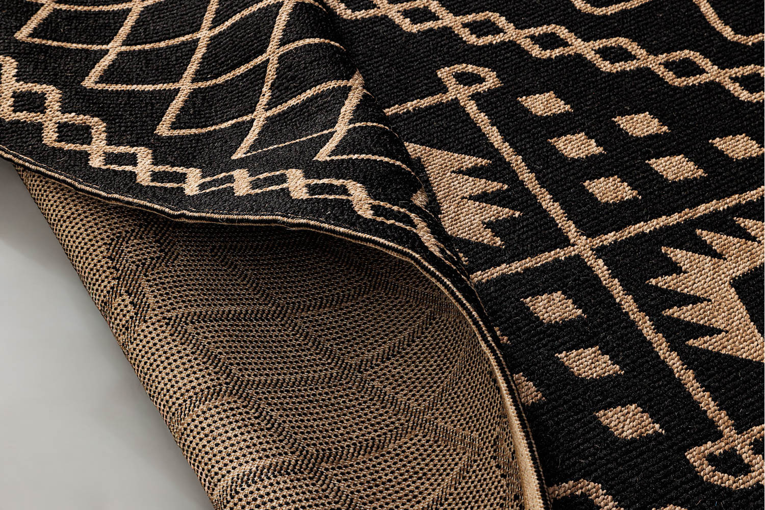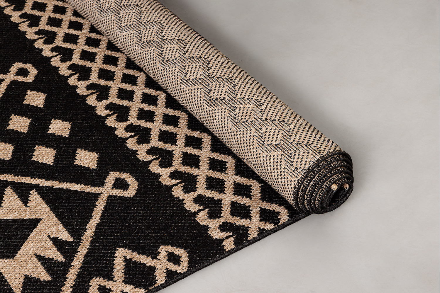 Accentuate your space with the Ziyah Rug, a stylish and durable piece that’s perfect for both indoor and outdoor use. Featuring an intricate weave in striking black and natural tones, this rug brings contemporary, Bolognese-inspired design to life. The eye-catching patterns and stunning details of this Turkish creation make it a decorative focal point for modern homes.