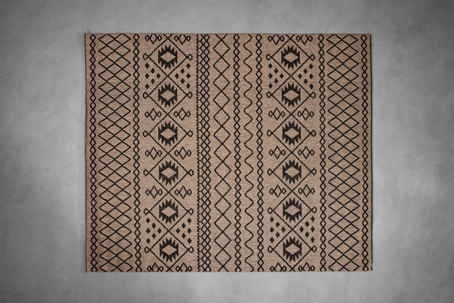 Accentuate your space with the Ziyah Rug, a stylish and durable piece that’s perfect for both indoor and outdoor use. Featuring an intricate weave in striking black and natural tones, this rug brings contemporary, Bolognese-inspired design to life. The eye-catching patterns and stunning details of this Turkish creation make it a decorative focal point for modern homes.