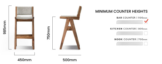 450mm (L) x 500mm (W) x 985mm (H) - Seat height - 750mm (H)