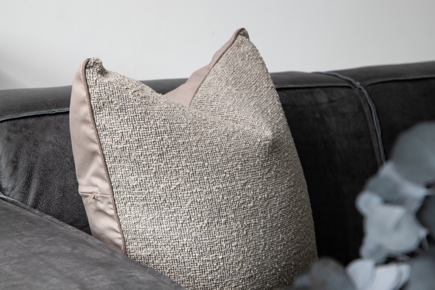 Stylish scatter cushion with duck feather inner and a removable outer cover.