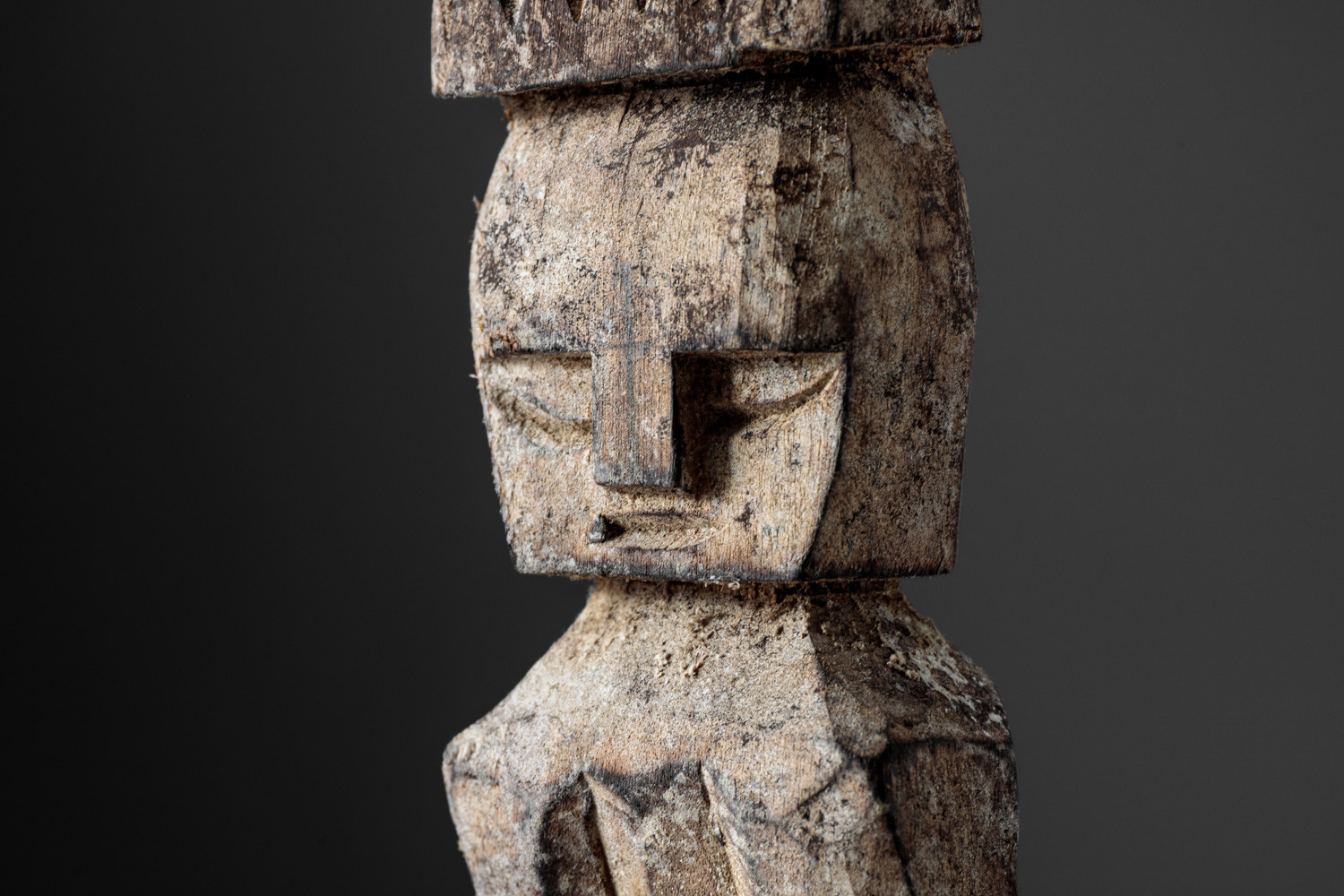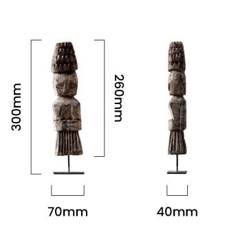 The Amla Wooden Sculpture captivates by combining tribal design with the rustic appeal of natural wood. Its elongated form and striking features add an element of cultural artistry to any room. Notice how the meticulous craftsmanship showcases the texture and finer details of the wood, making it a stunning focal point. Its weathered finish and natural grain patterns make each piece unique, further highlighting its handcrafted quality.