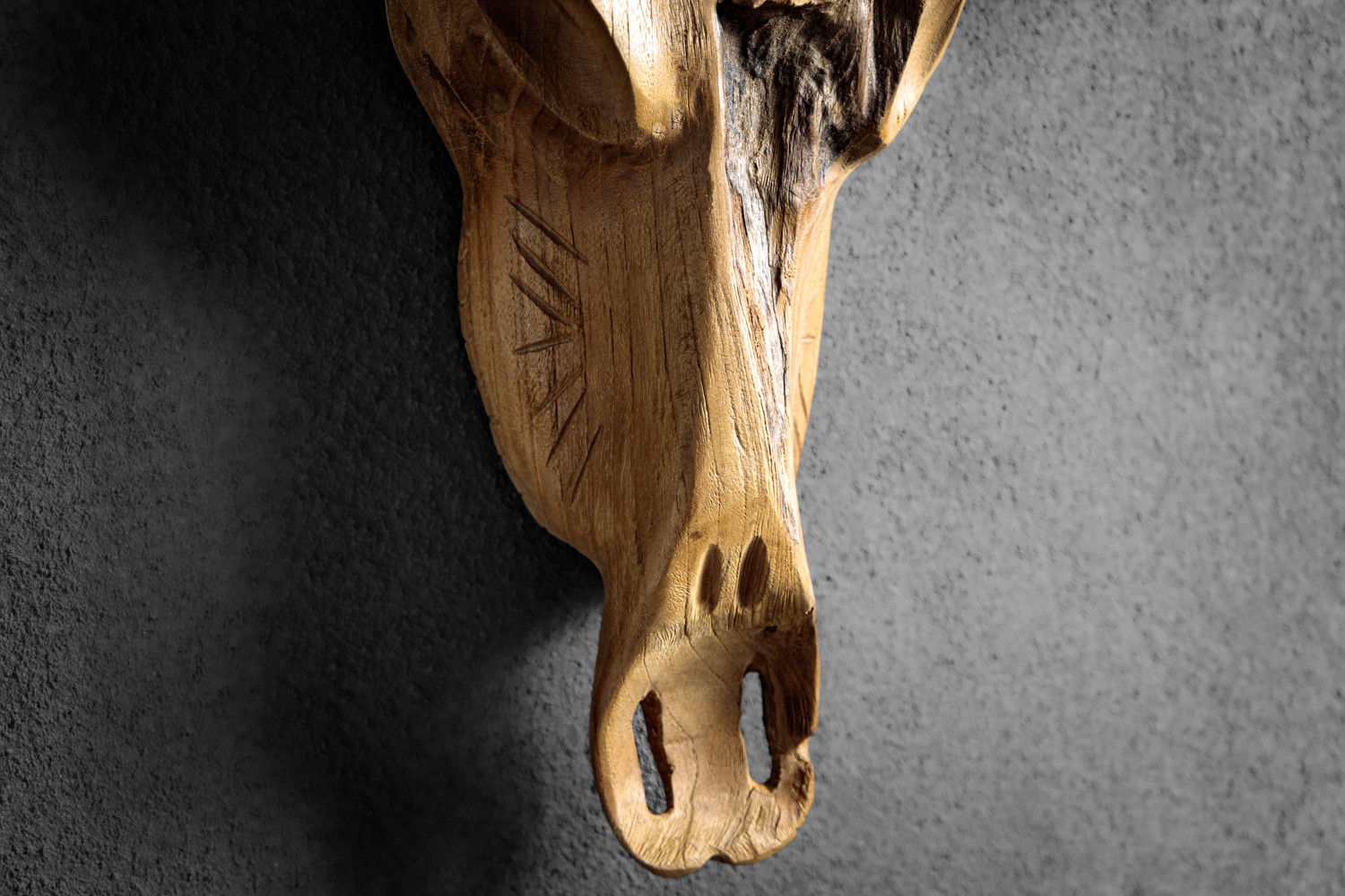 Make a striking decor statement with the Brangus Wooden Sculpture, a handcrafted work of art that brings together nature and tribal-inspired design. Carved from solid teakroot, this sculpture embodies the raw beauty and strength of natural materials, showcasing a detailed bovine skull motif. The combination of natural and black tones gives the piece a modern edge while staying true to its earthy, organic roots.
