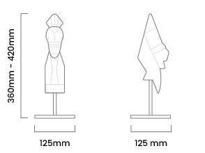125mm (L) x 125mm (W) x 360mm - 420mm (H)