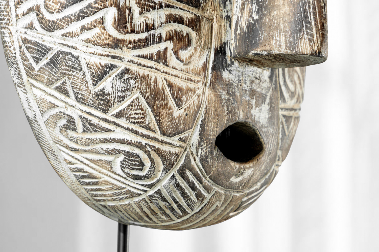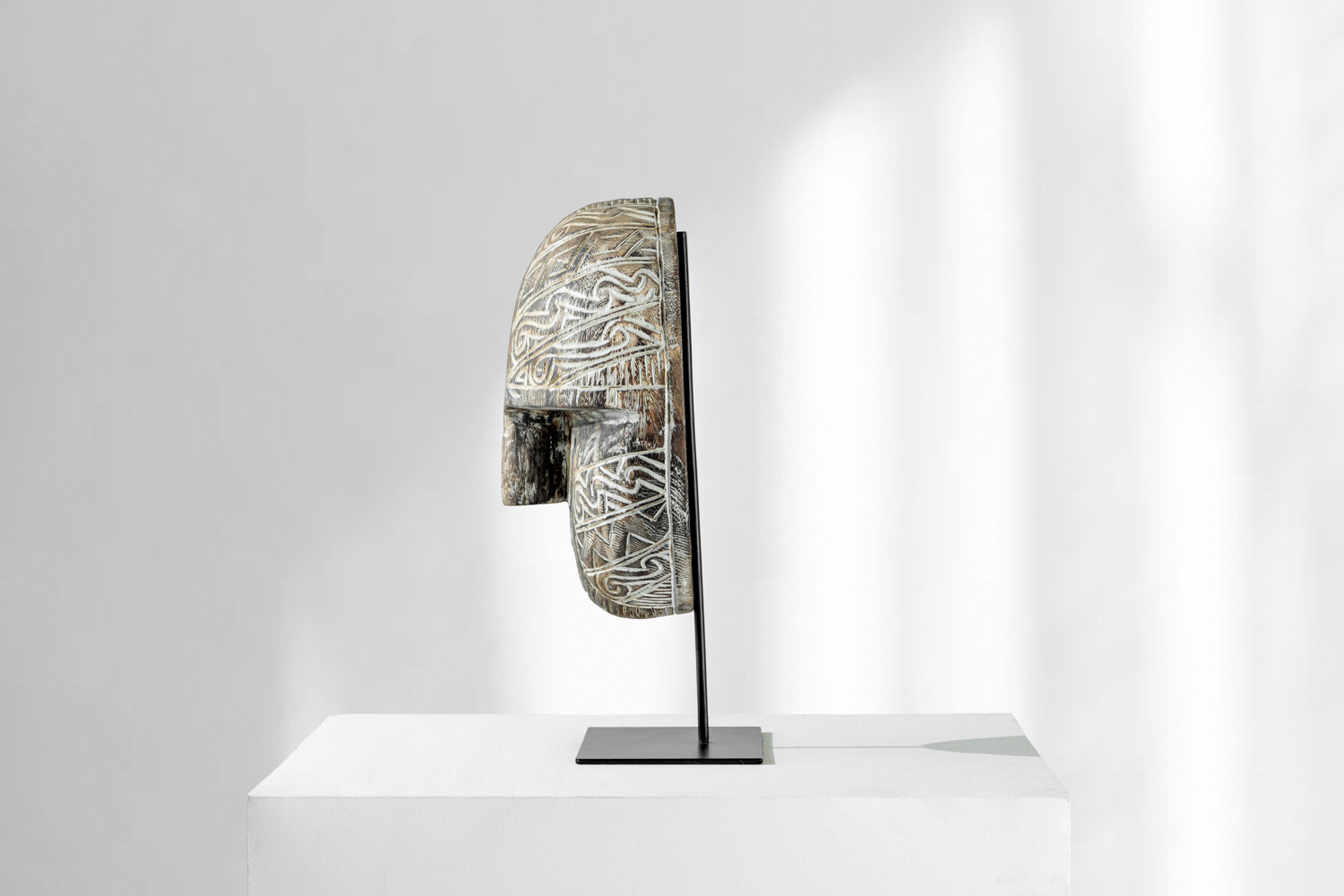 The Fergus features intricate carvings inspired by traditional tribal patterns, giving it a unique, textured appearance that stands out in any room. The natural variations in the wood, combined with the weathered, rustic finish, ensure that each piece is truly one-of-a-kind. Whether you place it on a mantel, a console table, or a bookshelf, the Fergus adds a layer of depth and authenticity to your space.