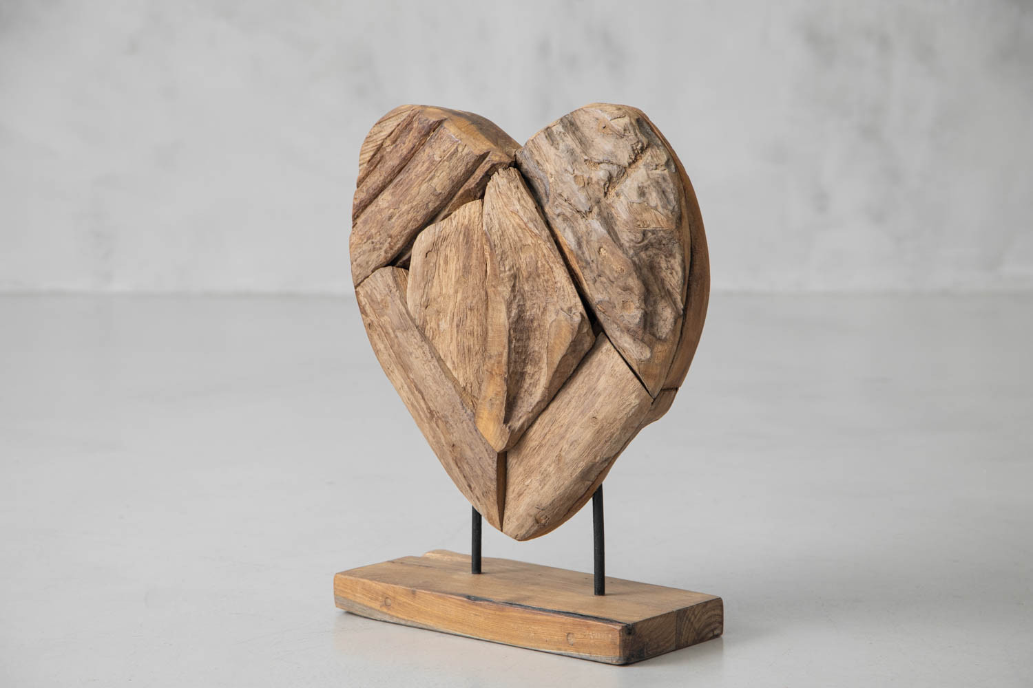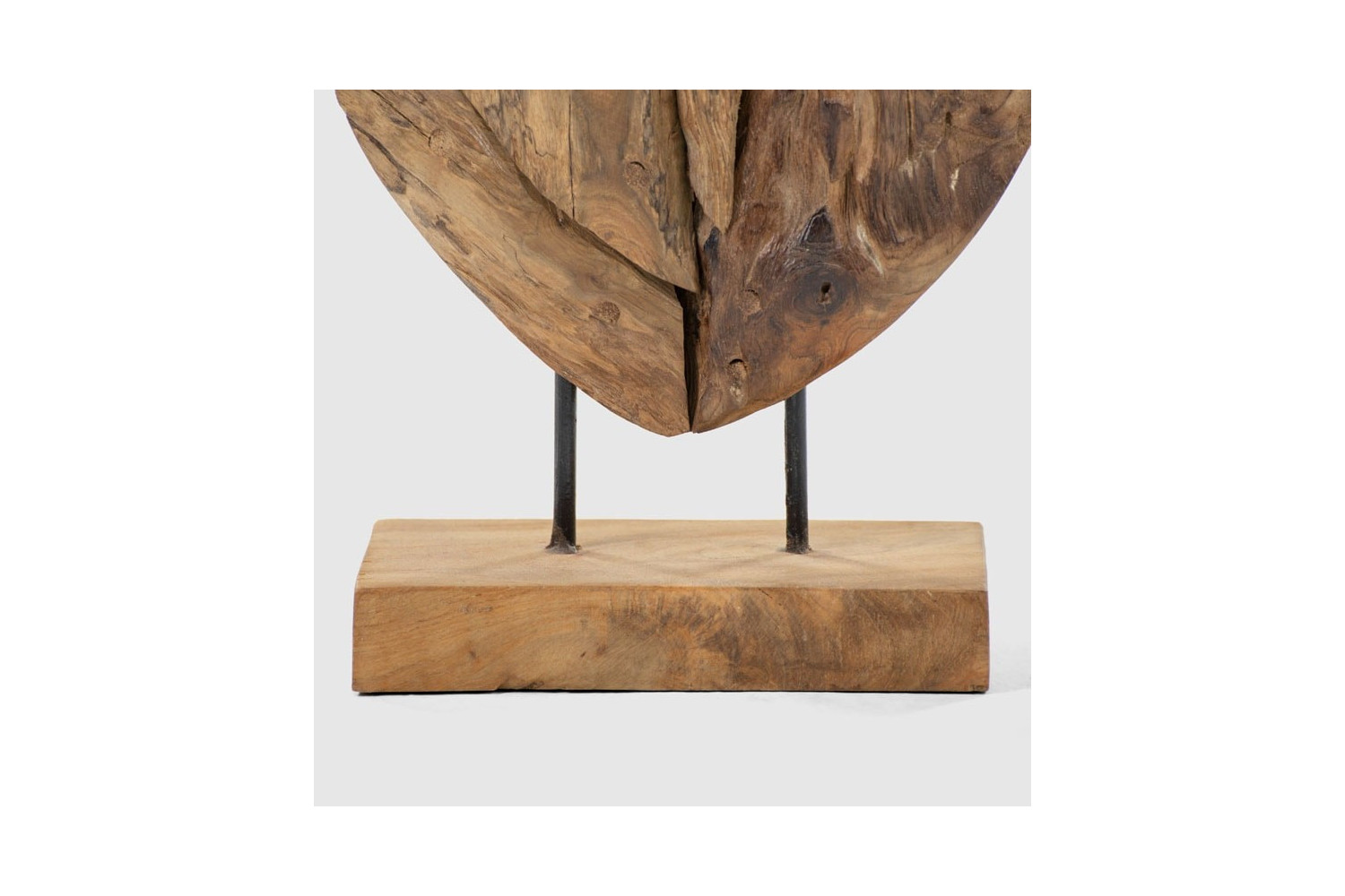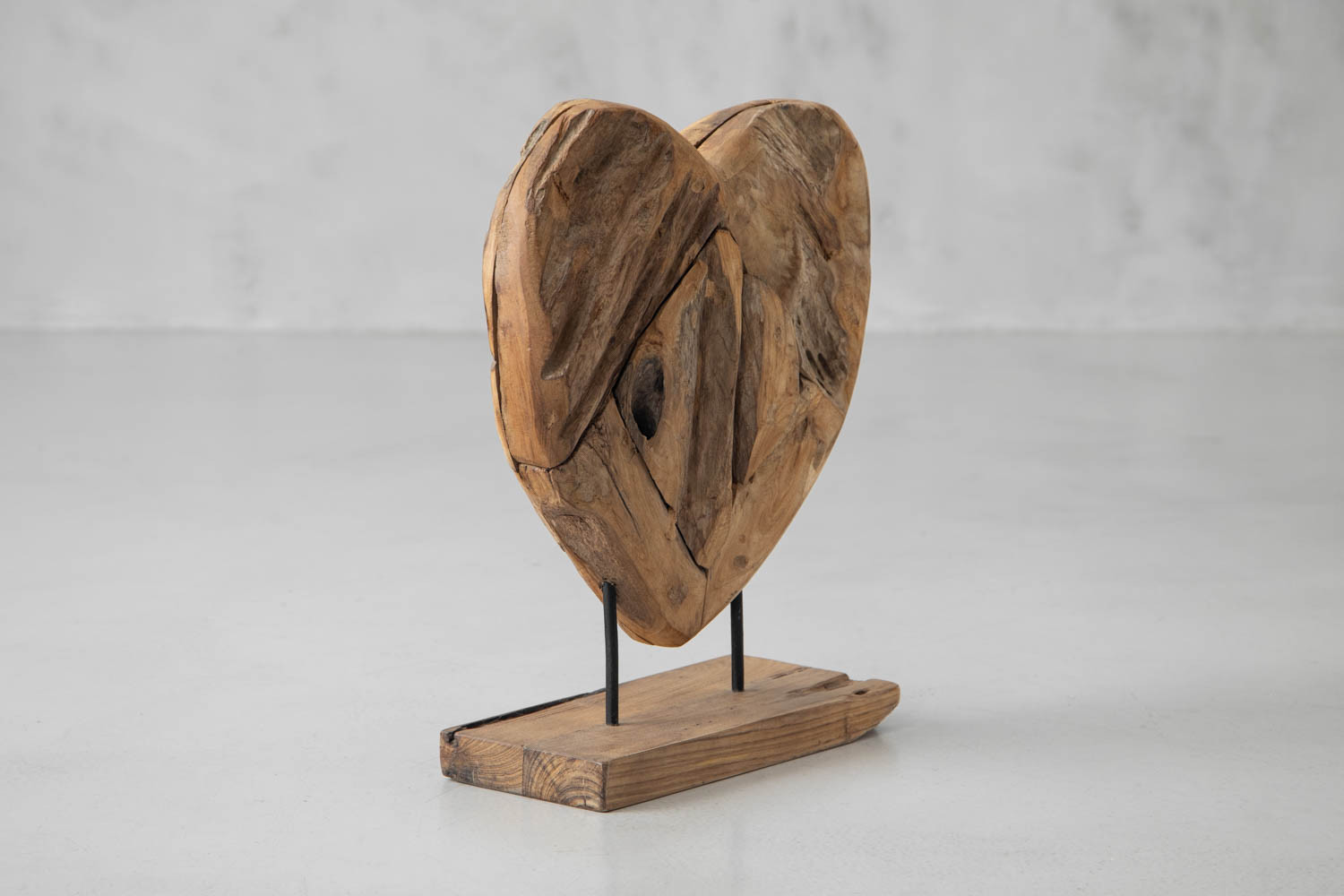 Impressive and unique, the decorative heart is uniquely hand-sculptured out of teak wood and placed on a sturdy stand. Adding flair to any interior.