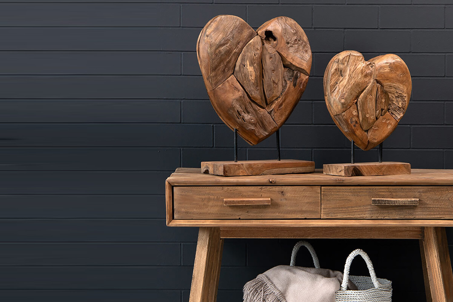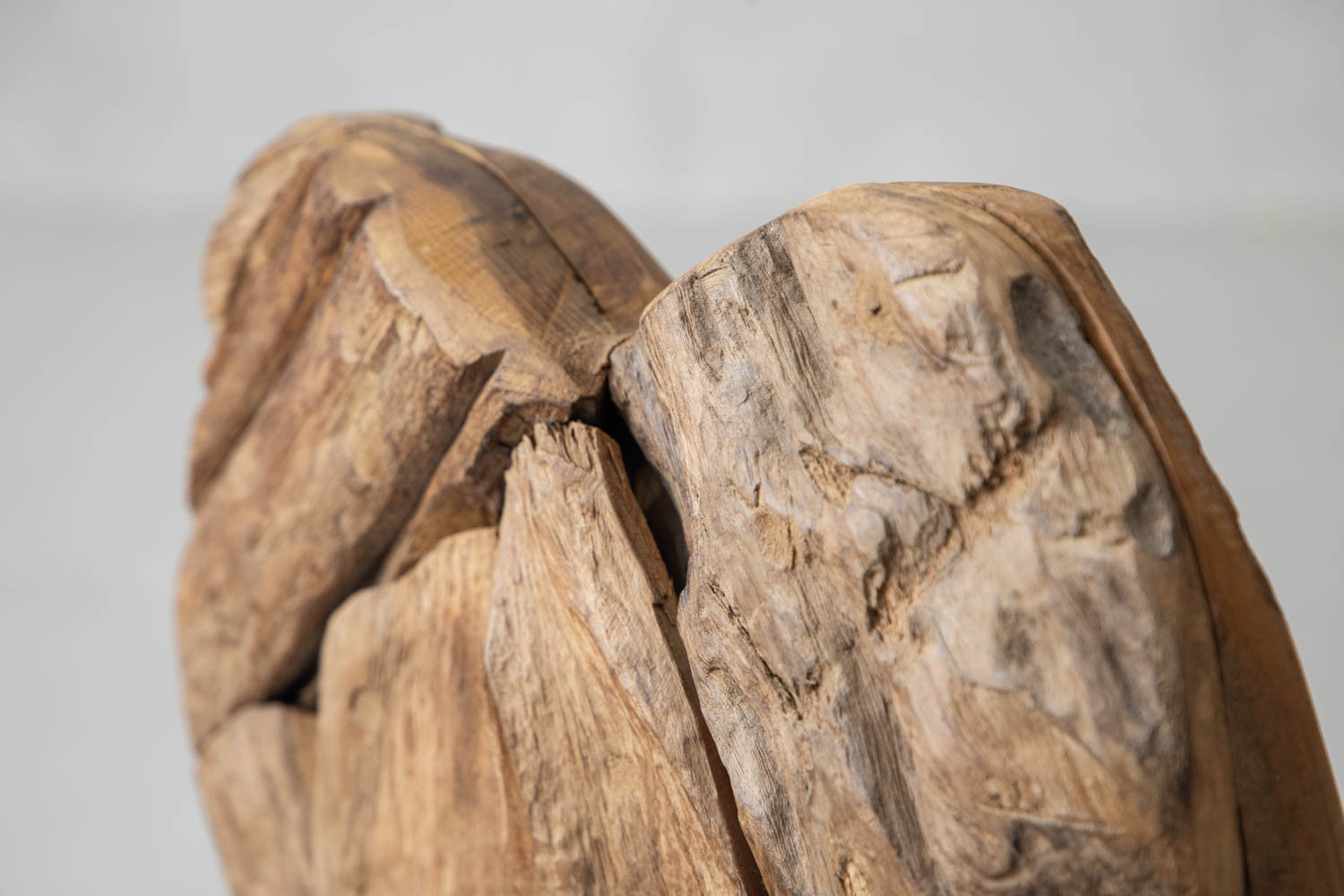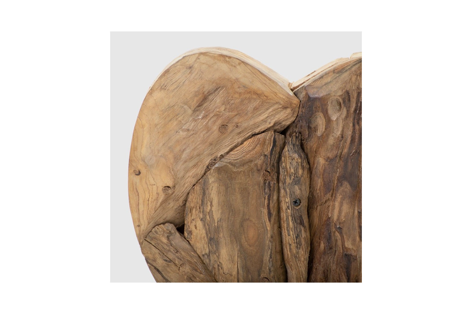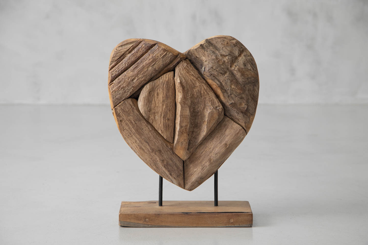 Impressive and unique, the decorative heart is uniquely hand-sculptured out of teak wood and placed on a sturdy stand. Adding flair to any interior.