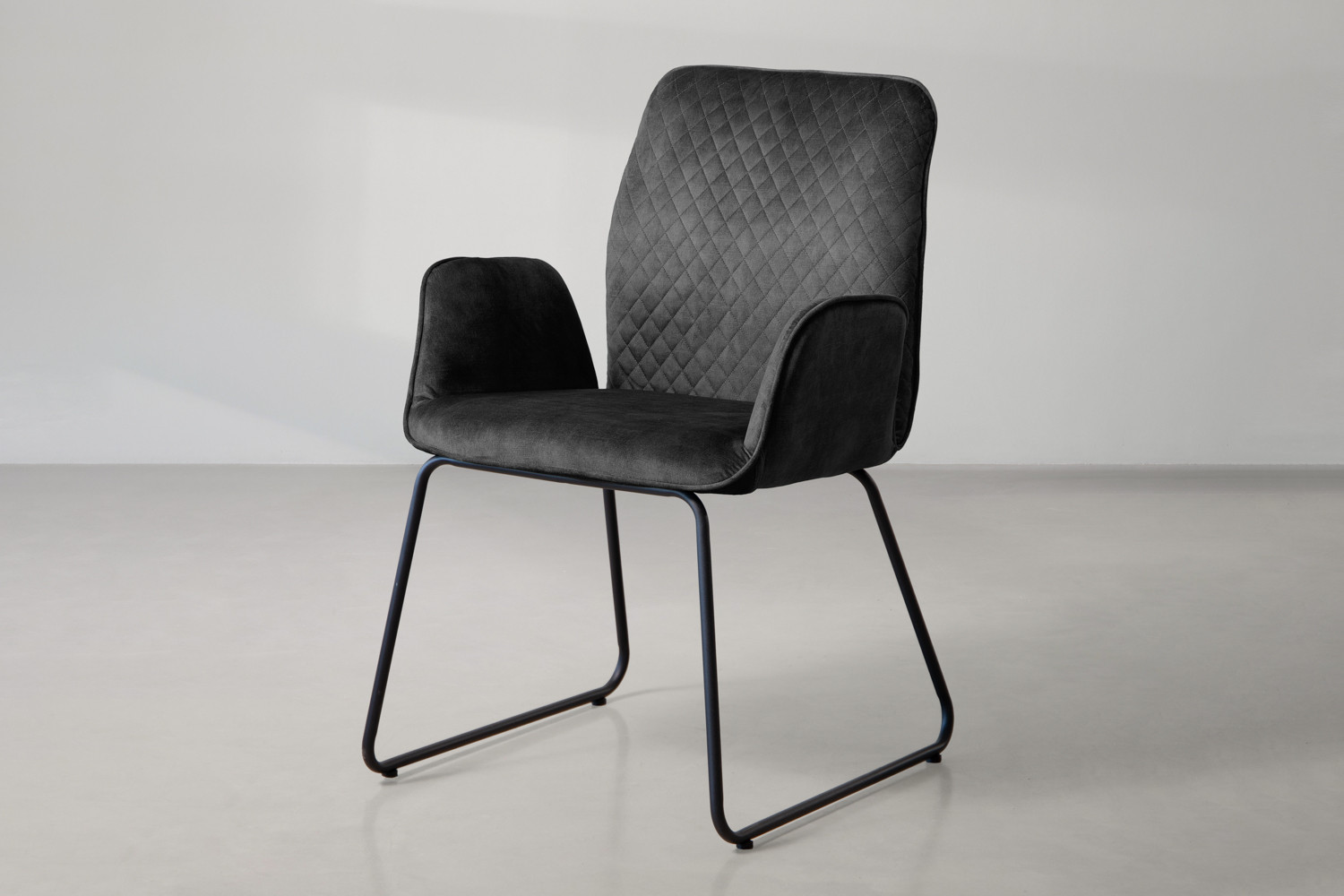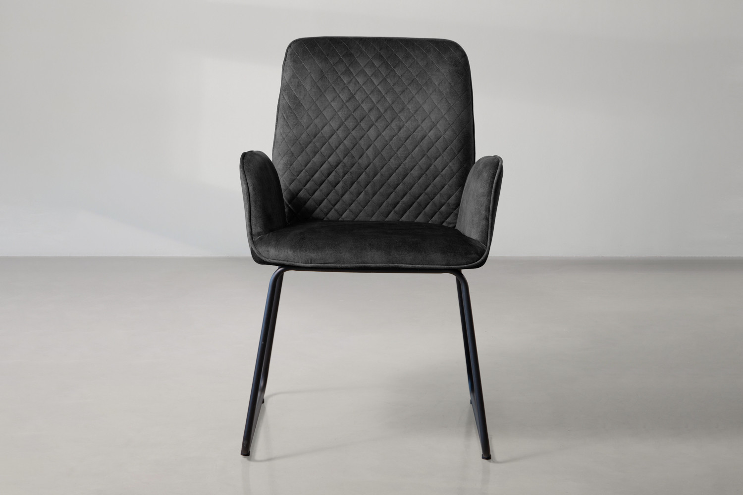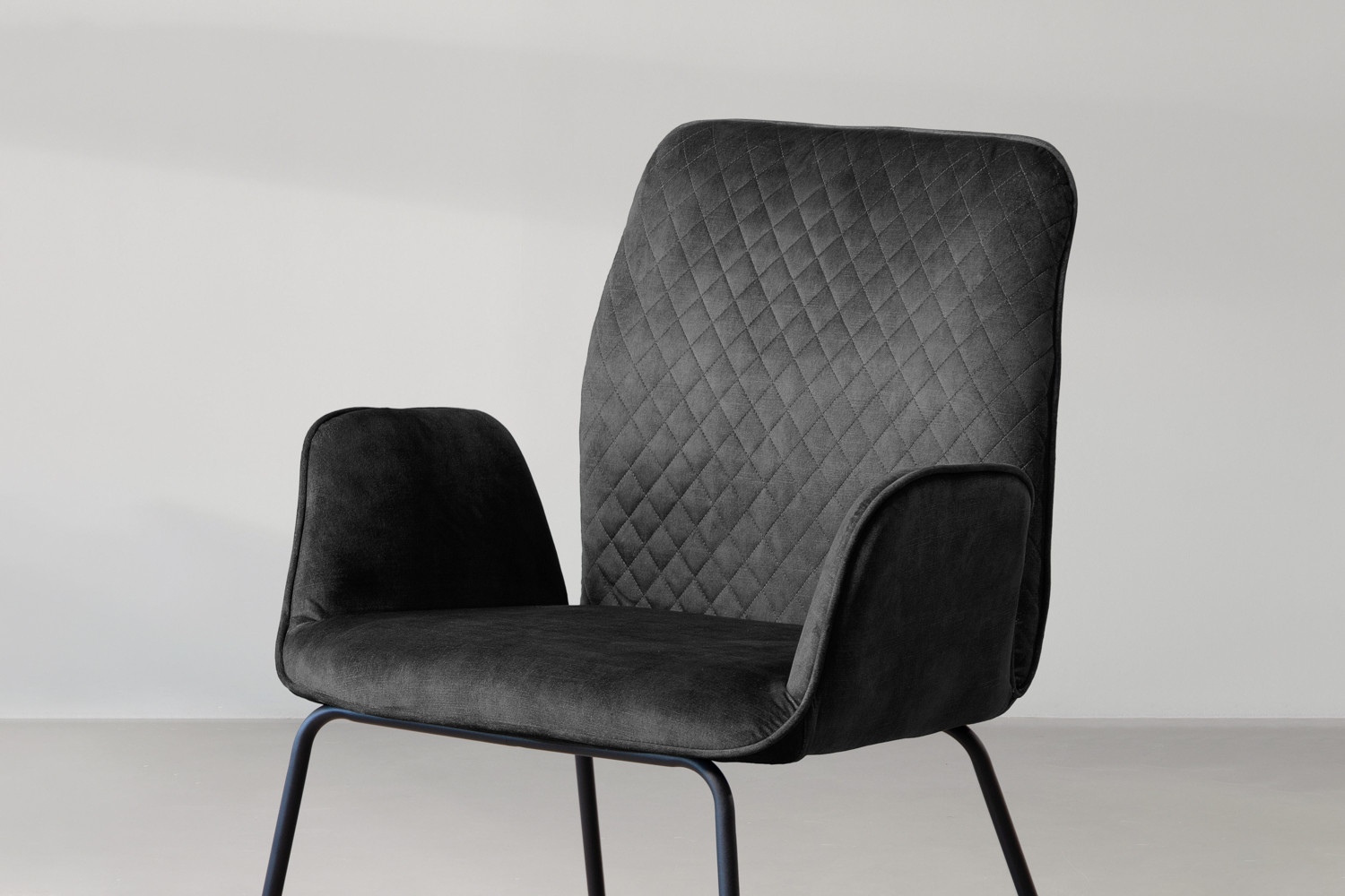 The Shaw Dining Chair offers a unique and elegant silhouette, bringing a solid sense of style to any dining space. Featuring distinctive winged armrests, a cushioned seat and powder-coated steel frame, this dining chair combines sophisticated charm and comfort. The Shaw presents the ideal addition to your dining space.