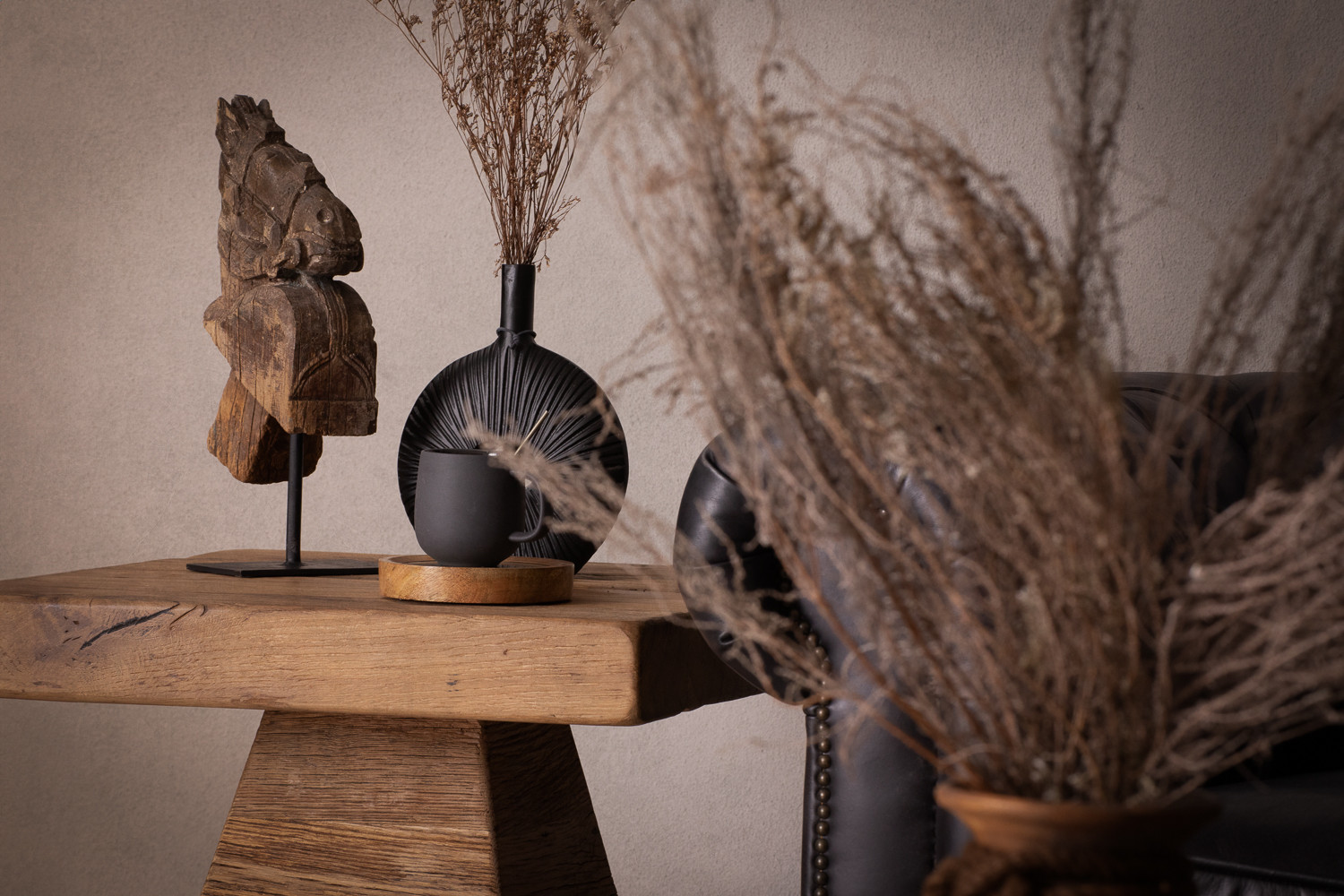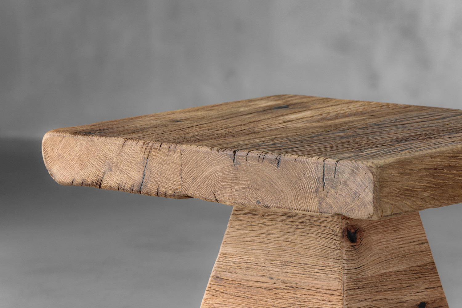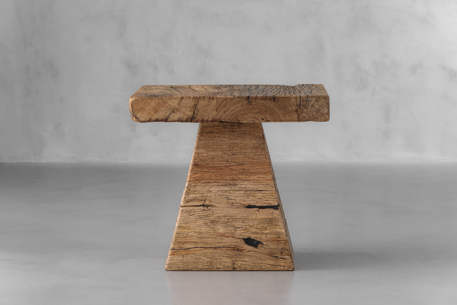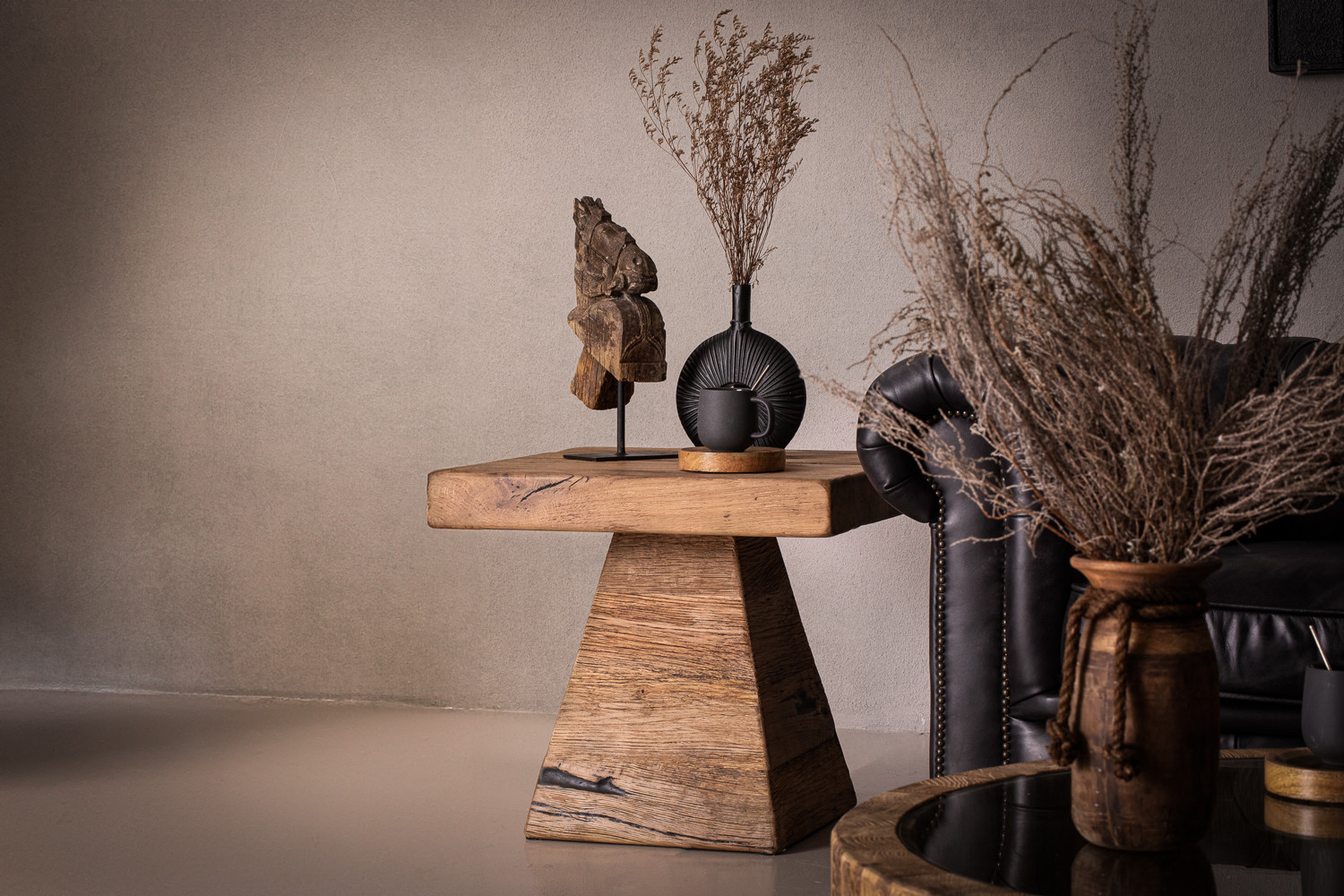 Take in the rustic charm of the Anakin Side Table, a masterpiece crafted from solid reclaimed oak. Its bold angular design creates a statement of strength and durability. This premium side table, with its rich textures and grains, brings an earthy elegance to any space, making it a luxurious addition to your home.