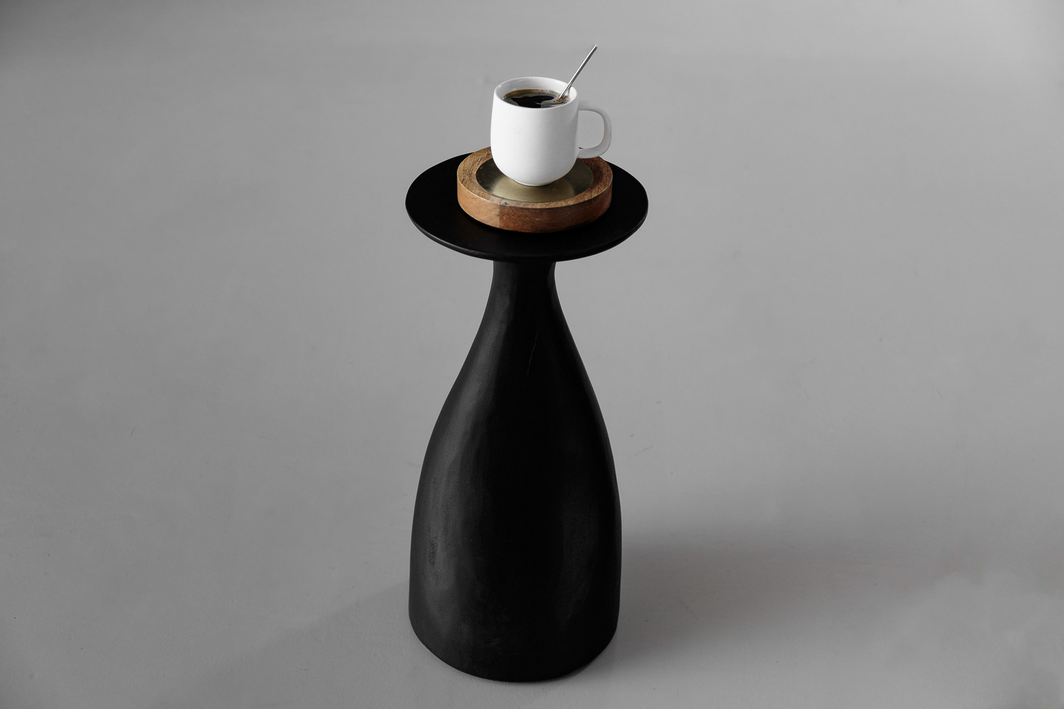 The Bodi Side Table – Black brings modern elegance and strength to any room. Crafted from solid mungur wood, it features a sleek black finish and smooth, curved details that highlight its artistic design. Its balanced smooth tabletop and grounding robust base make it as functional as it is visually striking. Perfect as a side table or decor centerpiece, the Bodi Side Table is a versatile addition to contemporary homes.