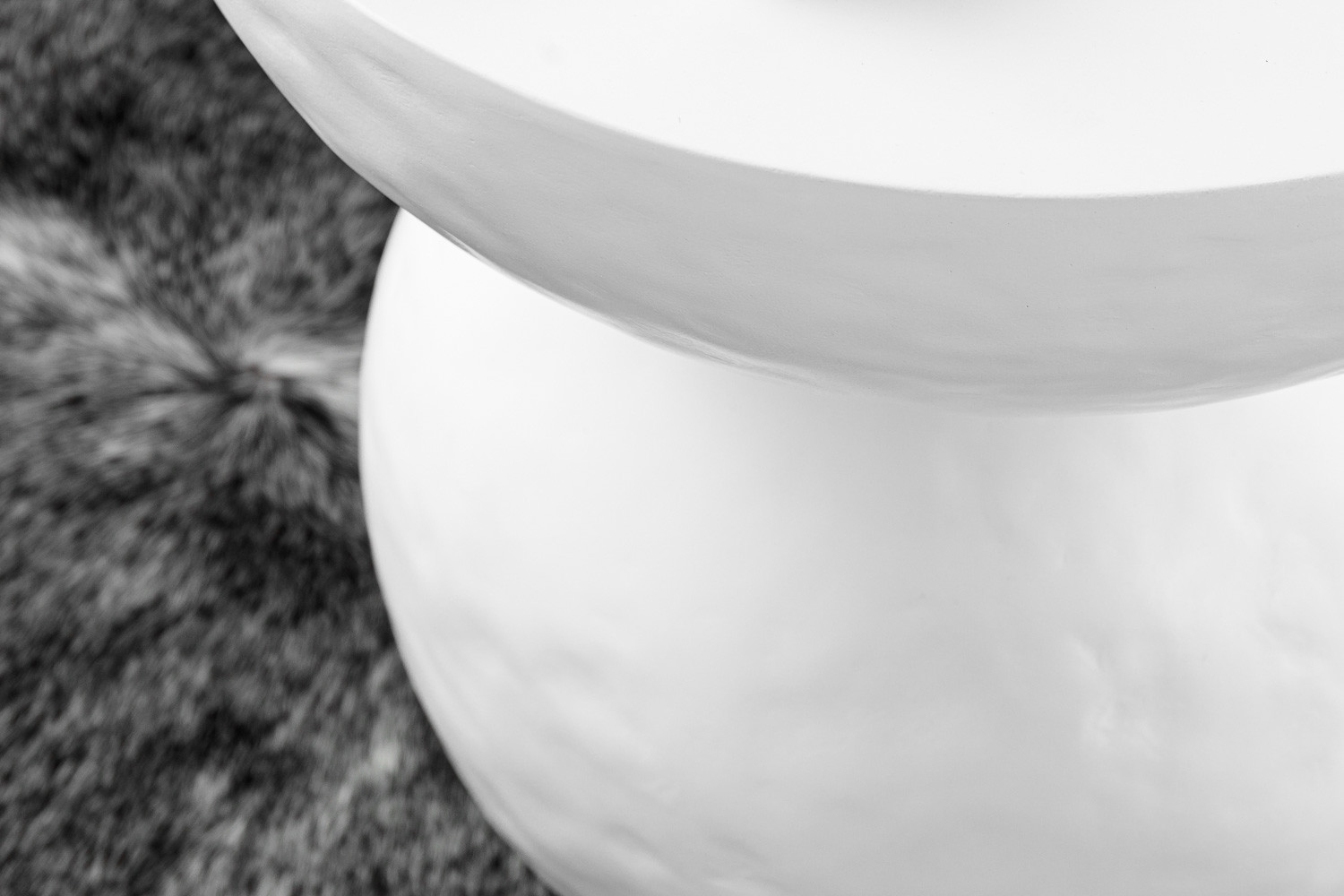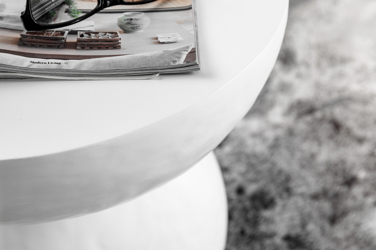 The Eliano Side Table is constructed from glass-reinforced concrete, a material known for its durability and sleek finish. This ensures that the table not only stands up to the rigors of daily use but also maintains its modern appeal over time. The smooth surface of the concrete adds a clean, polished look to the piece, while its sculptural design gives it an architectural feel, making it a statement piece in any modern or minimalist interior.