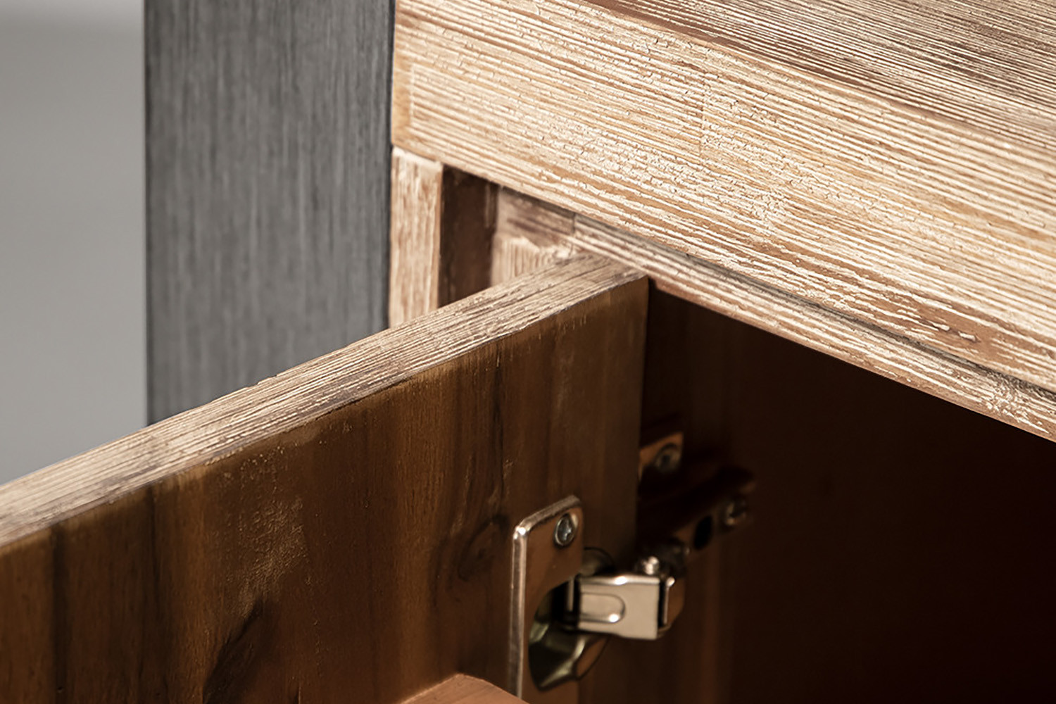 The sideboard is constructed from solid Acacia wood – a dense hardwood with exceptional durability – with Acacia veneers which provides a superior aesthetic and protects the wood from expanding or splitting due to temperature variance. The wire brush technique works beautifully to bring out the unique grain of this wood, while giving it a slightly weathered look that will hide any accidental scratches.