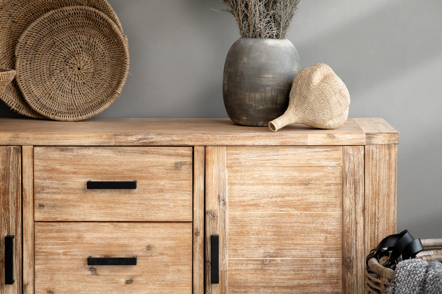 Sideboard: Solid Acacia wood and Acacia wood veneers | Handles: Powder Coated Steel