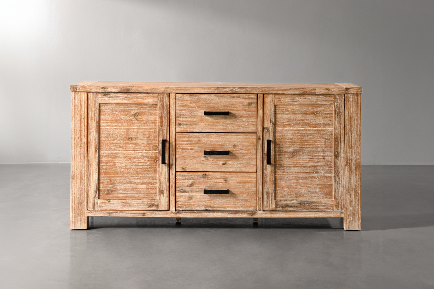 Sideboard: Natural with White Wire-Brushed Finish | Handles: Black
