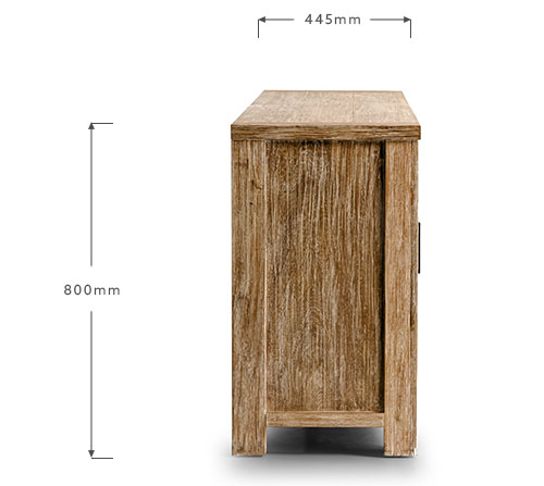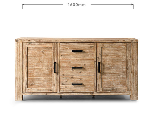 The Sideboard is constructed from solid Acacia wood – a dense hardwood with exceptional durability – with Acacia wood veneers which provides a superior aesthetic and protects the wood from expanding or splitting due to temperature variance. The wire brush technique works beautifully to bring out the unique grain of this wood, while giving it a slightly weathered look that will hide any accidental scratches.