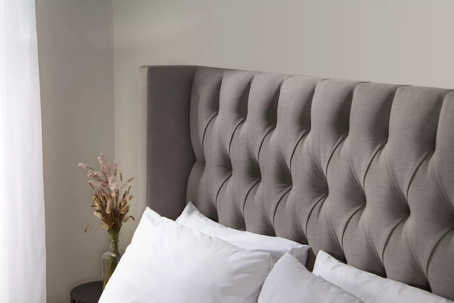 The headboard boasts a well-cushioned tufted back to give you comfortable support for sitting, reading or working in bed. The full-length wingback design adds a sense of cosiness and intimacy, while bringing a fresh element to this classic look.