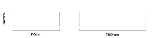 1880mm (L) x 910mm (W) x 360mm (H)