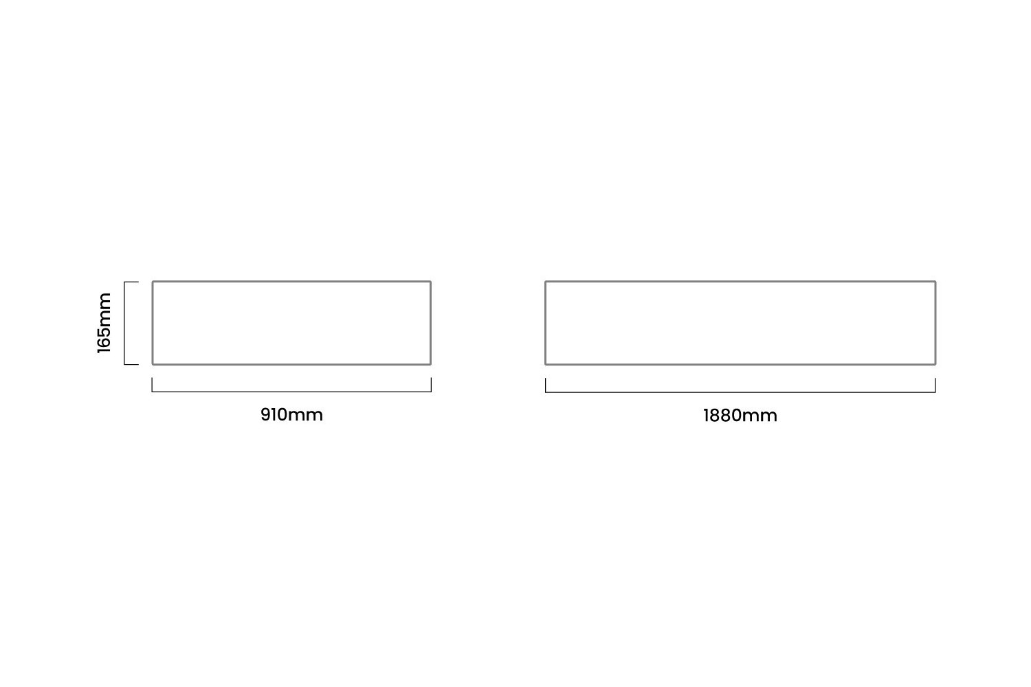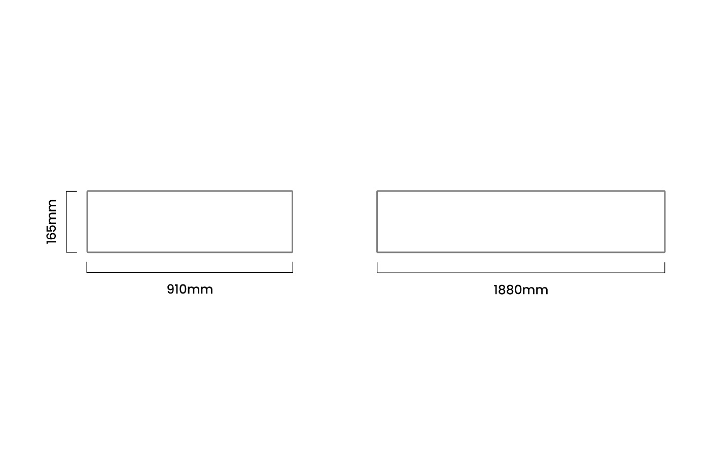 Single - 1880mm (L) x 910mm (W) x 165mm (H)