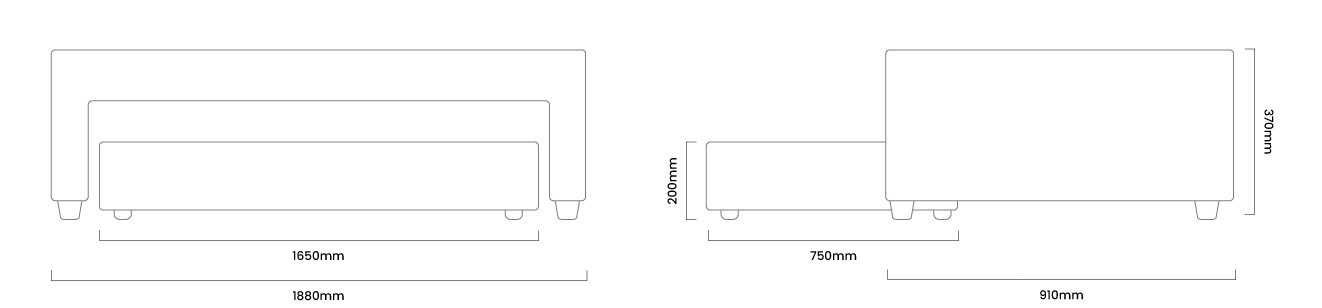 Bed Base: 1880mm (L) x 910mm (W) x 370mm (H)