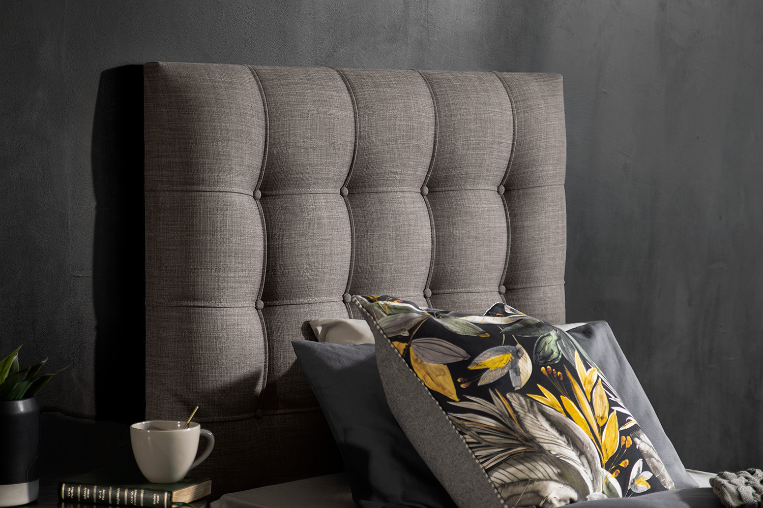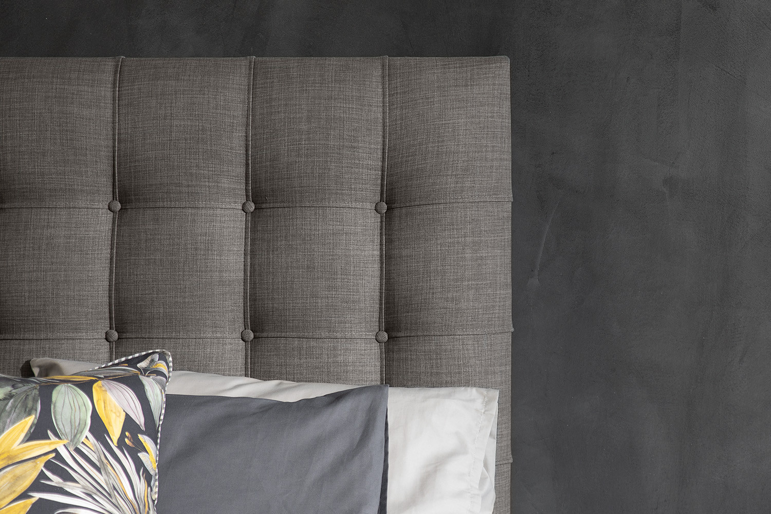 • Generously proportioned headboard with stylish large grid tufting and luxurious padding